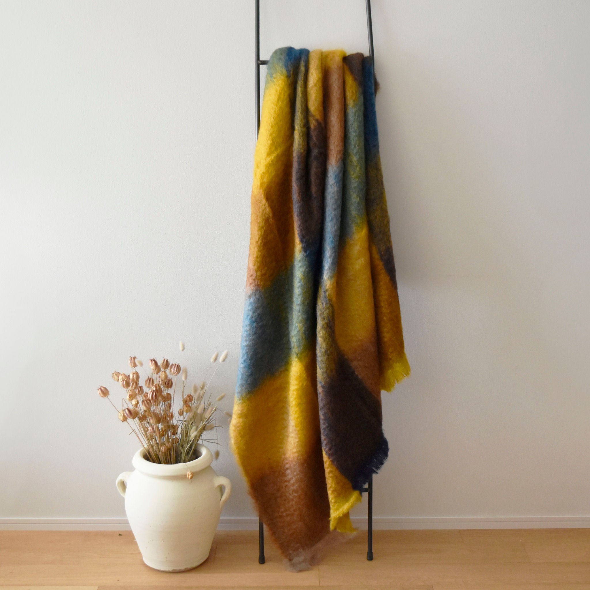 ソファや椅子にさっと掛けるだけでに美しい発色のモヘアが暖かで洗練されたポイントになります。