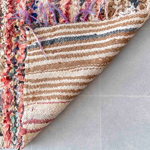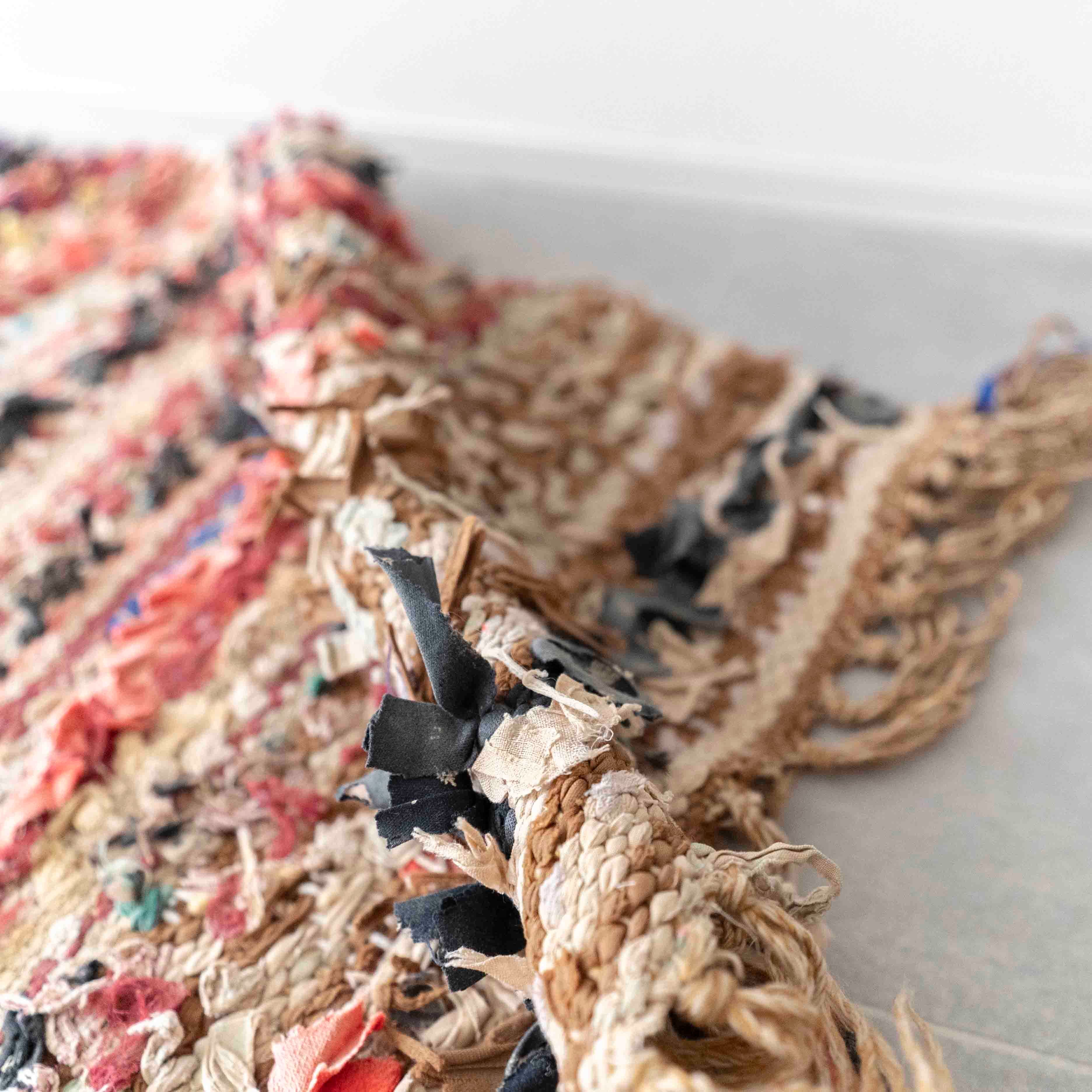 アトラス山脈をはじめ、モロッコ各地のベルベル村の女性達によって織られる絨毯、ボ・シャルウィット。素材は全て服の端切でできたリサイクル絨毯で、「シャルウィット」はベルベル語で端切れという意味です。遊牧生活から定住生活に変わったことで、羊を買う必要性がなくなったことから、リサイクルが得意なベルベルの女性たちは羊の毛の代わりに自分たちの着なくなった服を裂いて織り始めました。ウールのラグよりも歴史が浅いため、「家のために」「嫁入り道具として」織られた古いボ・シャルウィットは今では見つかりにくくなりました。