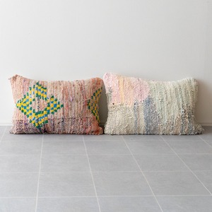 アトラス山脈をはじめ、モロッコ各地のベルベル村の女性達によって織られる絨毯、ボ・シャルウィット。素材は全て服の端切でできたリサイクル絨毯で、「シャルウィット」はベルベル語で端切れという意味です。遊牧生活から定住生活に変わったことで、羊を買う必要性がなくなったことから、リサイクルが得意なベルベルの女性たちは羊の毛の代わりに自分たちの着なくなった服を裂いて織り始めました。ウールのラグよりも歴史が浅いため、「家のために」「嫁入り道具として」織られた古いボ・シャルウィットは今では見つかりにくくなりました。
