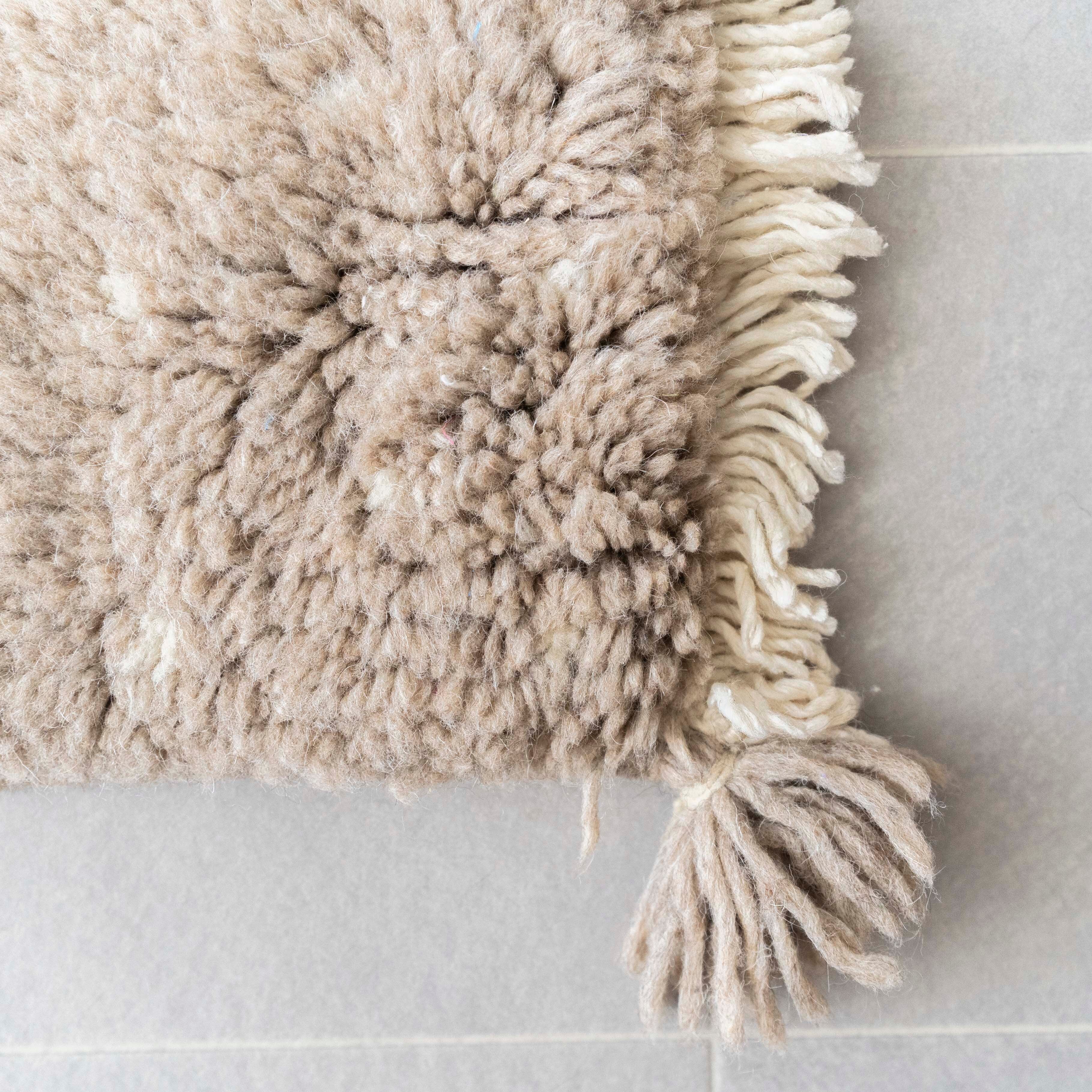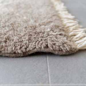 中アトラス北東部にある、ベニワレンという村で織られるラグです。染めなどを一切行わず、ウール本来のベージュやブラウンを生かしたナチュラルな色使いと、ふかふかとリッチな毛足の長さが特徴。モダンで魅力的なラグです。1960年代〜1970年代にかけて作られたものが多く、歴史のあるものについては、今では状態の良いものは希少となってしまいました。新しく作られているものには、美しい色に染めたスタイルも見られます。