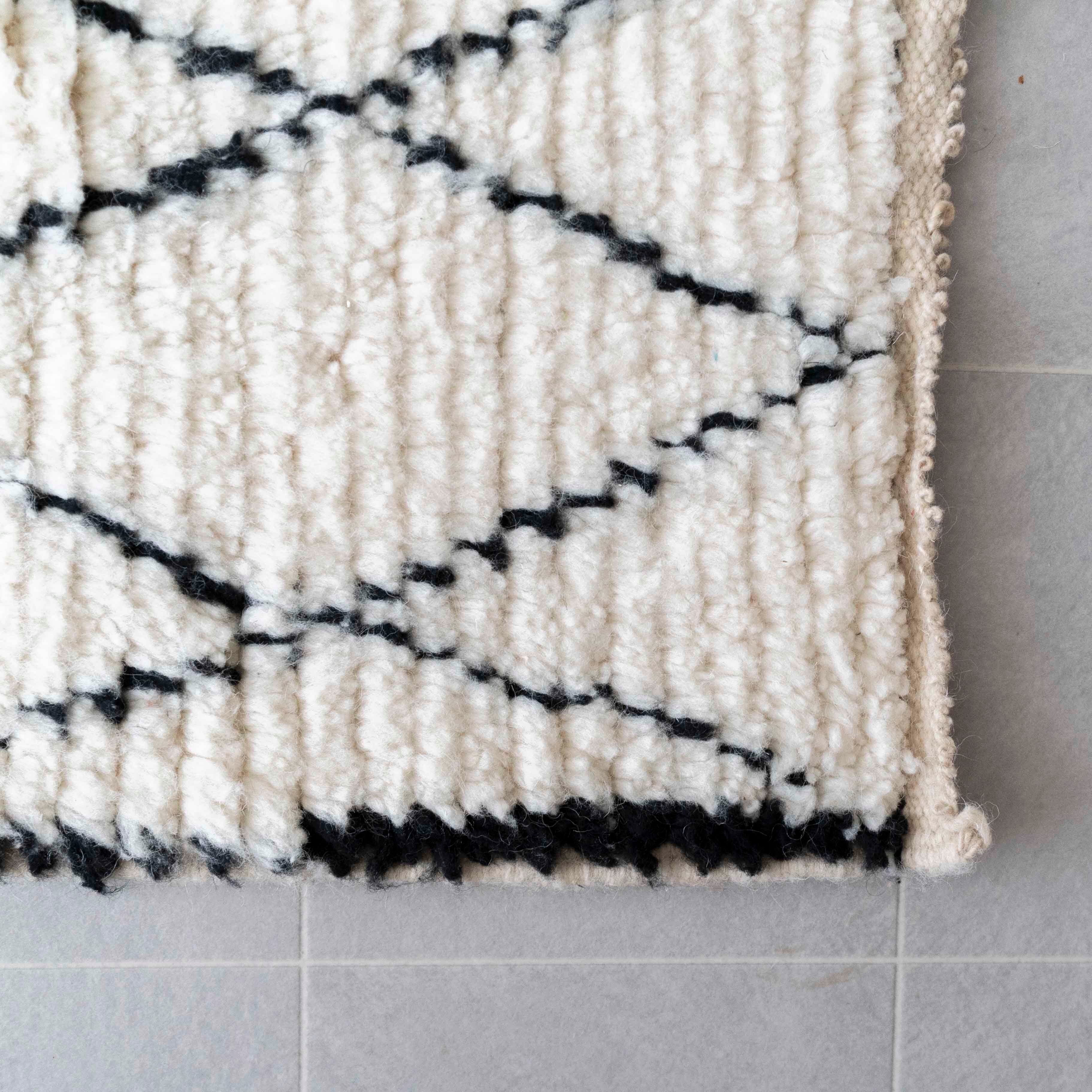 中アトラス北東部にある、ベニワレンという村で織られるラグです。染めなどを一切行わず、ウール本来のベージュやブラウンを生かしたナチュラルな色使いと、ふかふかとリッチな毛足の長さが特徴。モダンで魅力的なラグです。1960年代〜1970年代にかけて作られたものが多く、歴史のあるものについては、今では状態の良いものは希少となってしまいました。新しく作られているものには、美しい色に染めたスタイルも見られます。