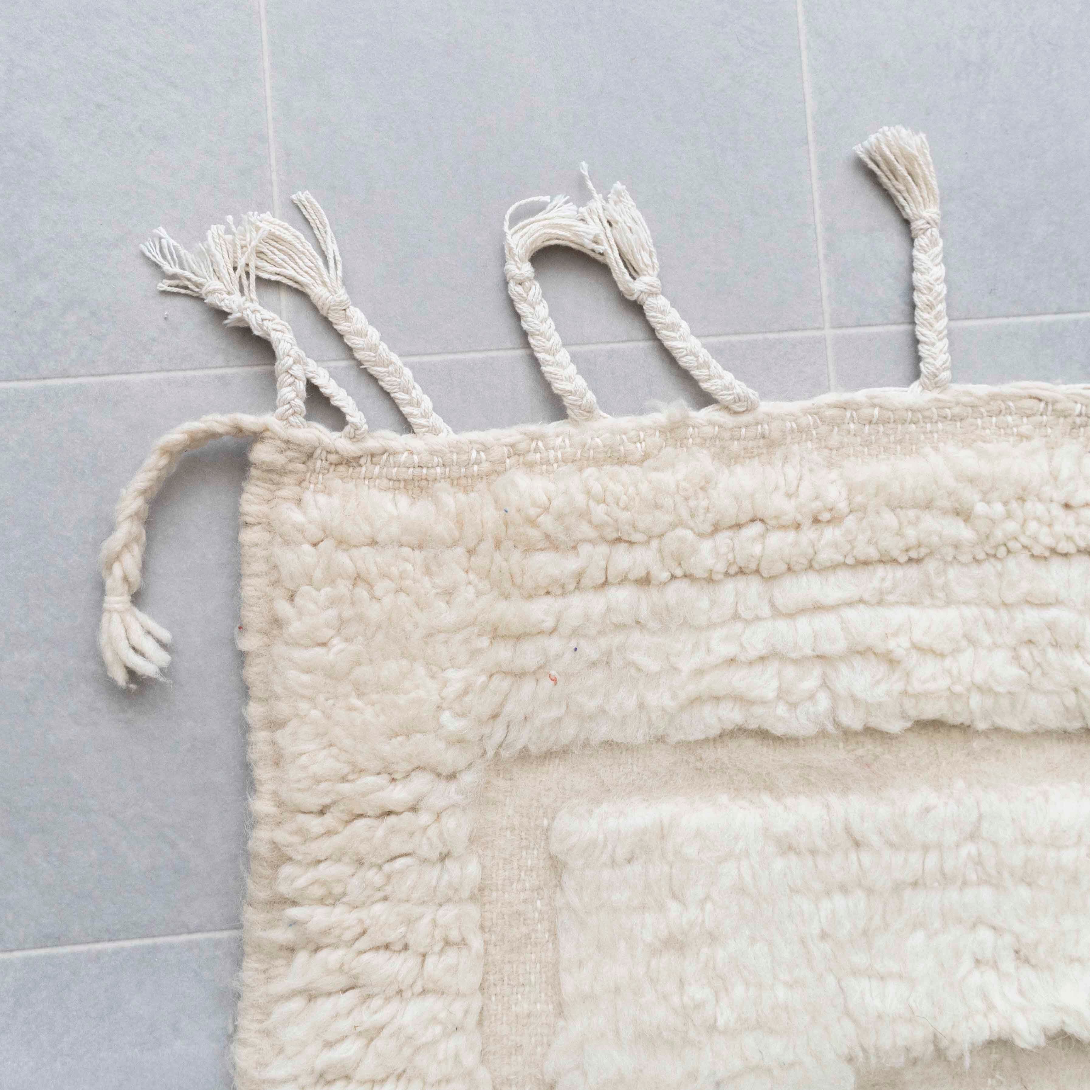 中アトラス北東部にある、ベニワレンという村で織られるラグです。染めなどを一切行わず、ウール本来のベージュやブラウンを生かしたナチュラルな色使いと、ふかふかとリッチな毛足の長さが特徴。モダンで魅力的なラグです。1960年代〜1970年代にかけて作られたものが多く、歴史のあるものについては、今では状態の良いものは希少となってしまいました。新しく作られているものには、美しい色に染めたスタイルも見られます。