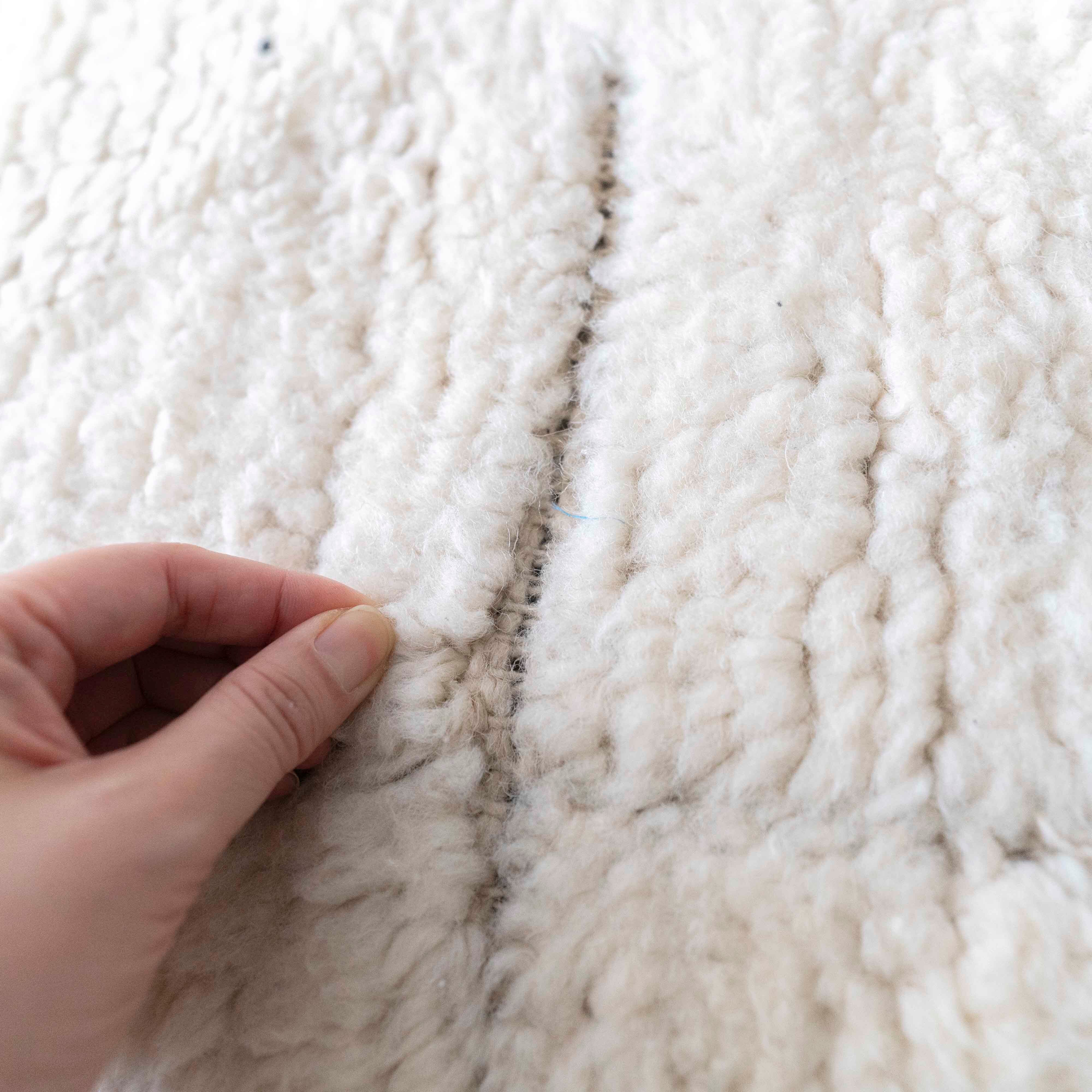 中アトラス北東部にある、ベニワレンという村で織られるラグです。染めなどを一切行わず、ウール本来のベージュやブラウンを生かしたナチュラルな色使いと、ふかふかとリッチな毛足の長さが特徴。モダンで魅力的なラグです。1960年代〜1970年代にかけて作られたものが多く、歴史のあるものについては、今では状態の良いものは希少となってしまいました。新しく作られているものには、美しい色に染めたスタイルも見られます。
