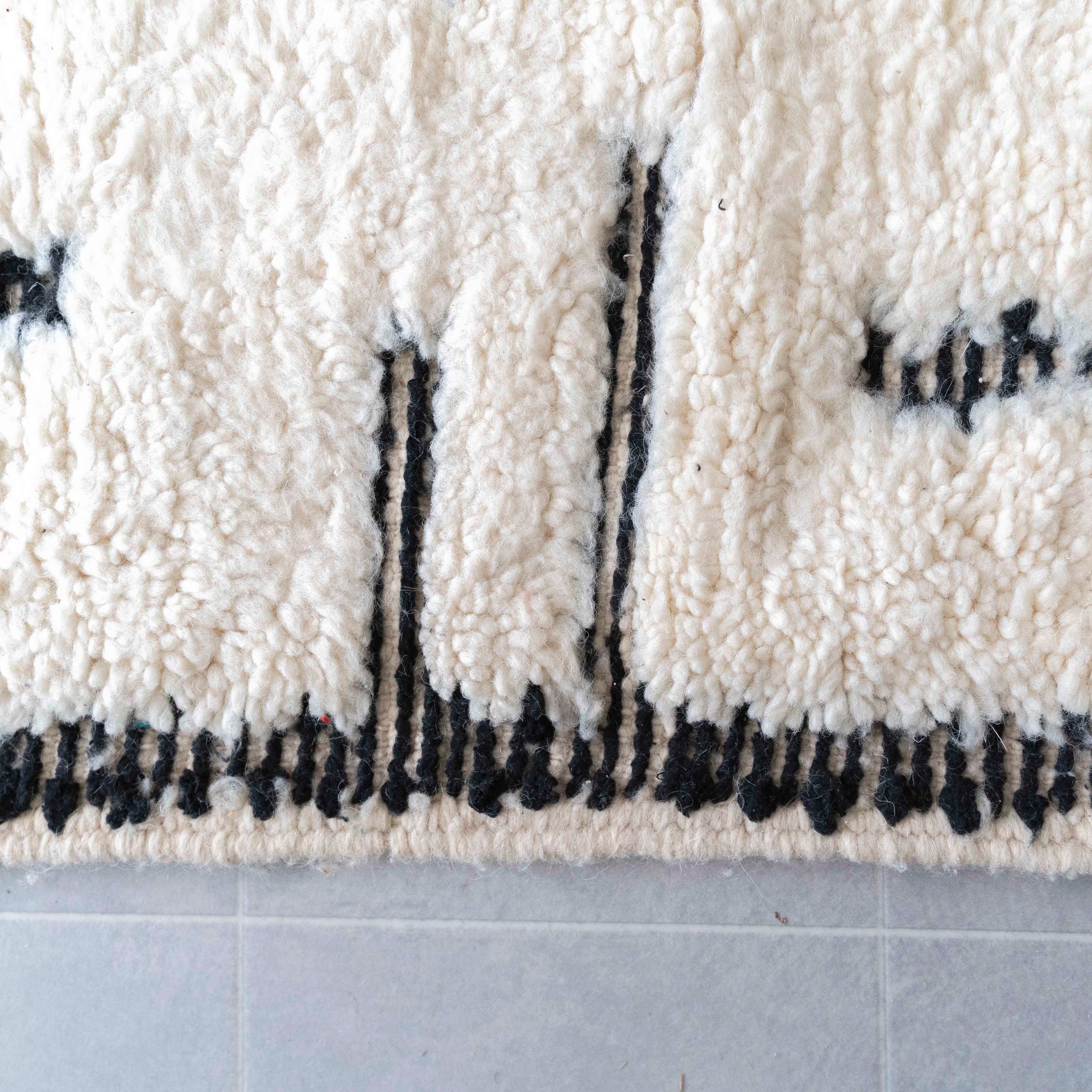 ボディは上品なオフホワイト。ブラックホワイトのキリムの織り柄をのぞかせるモダンな印象のラグに仕上げました。