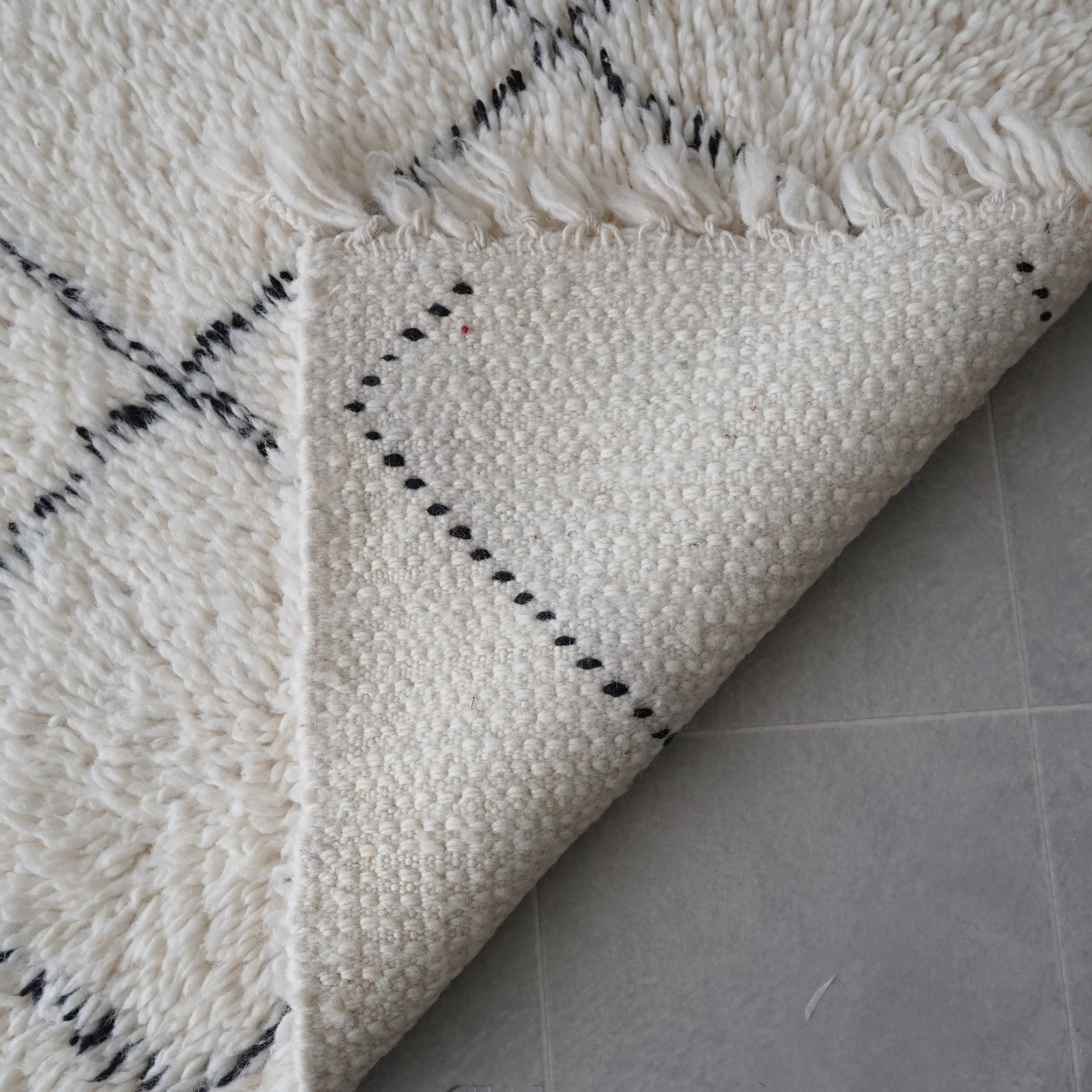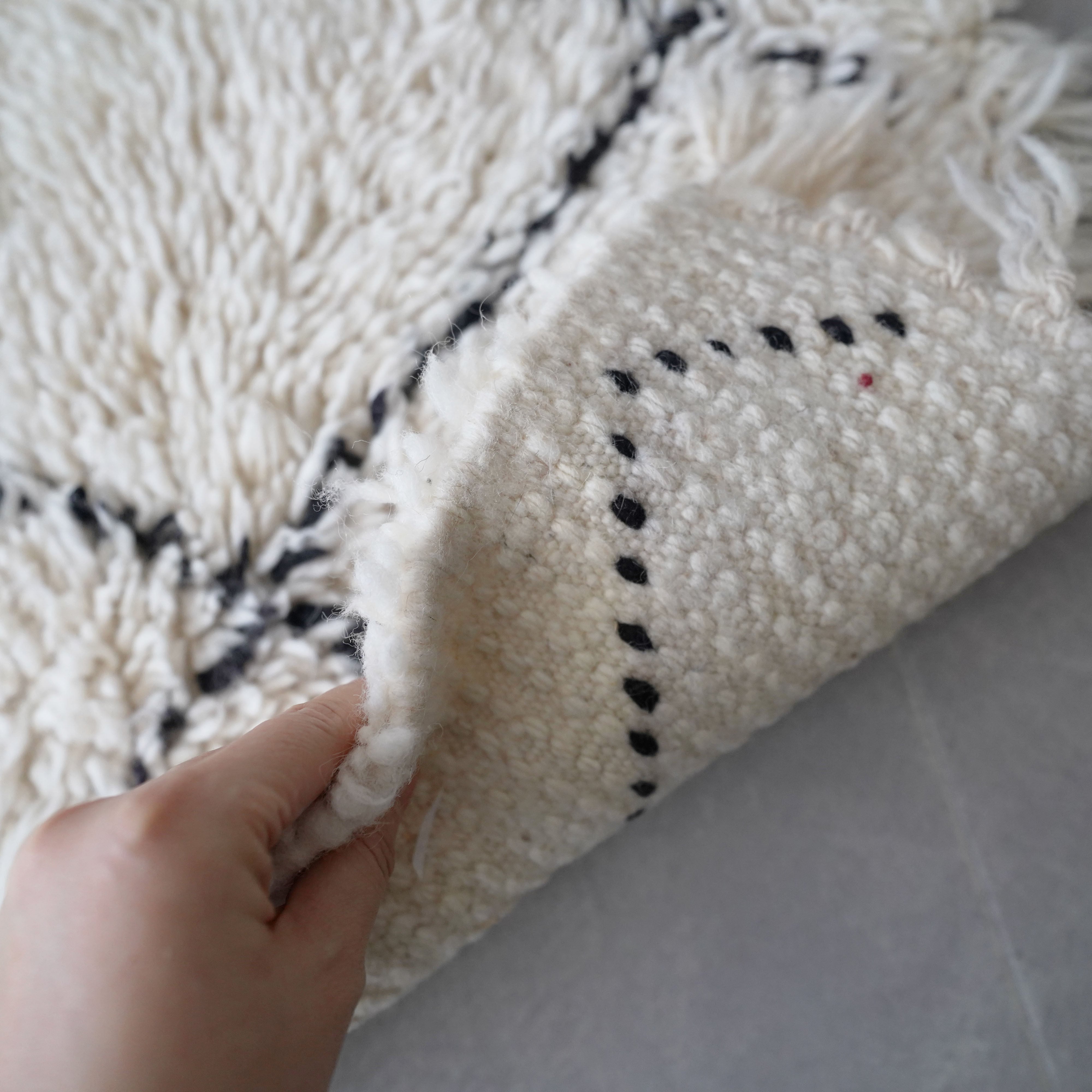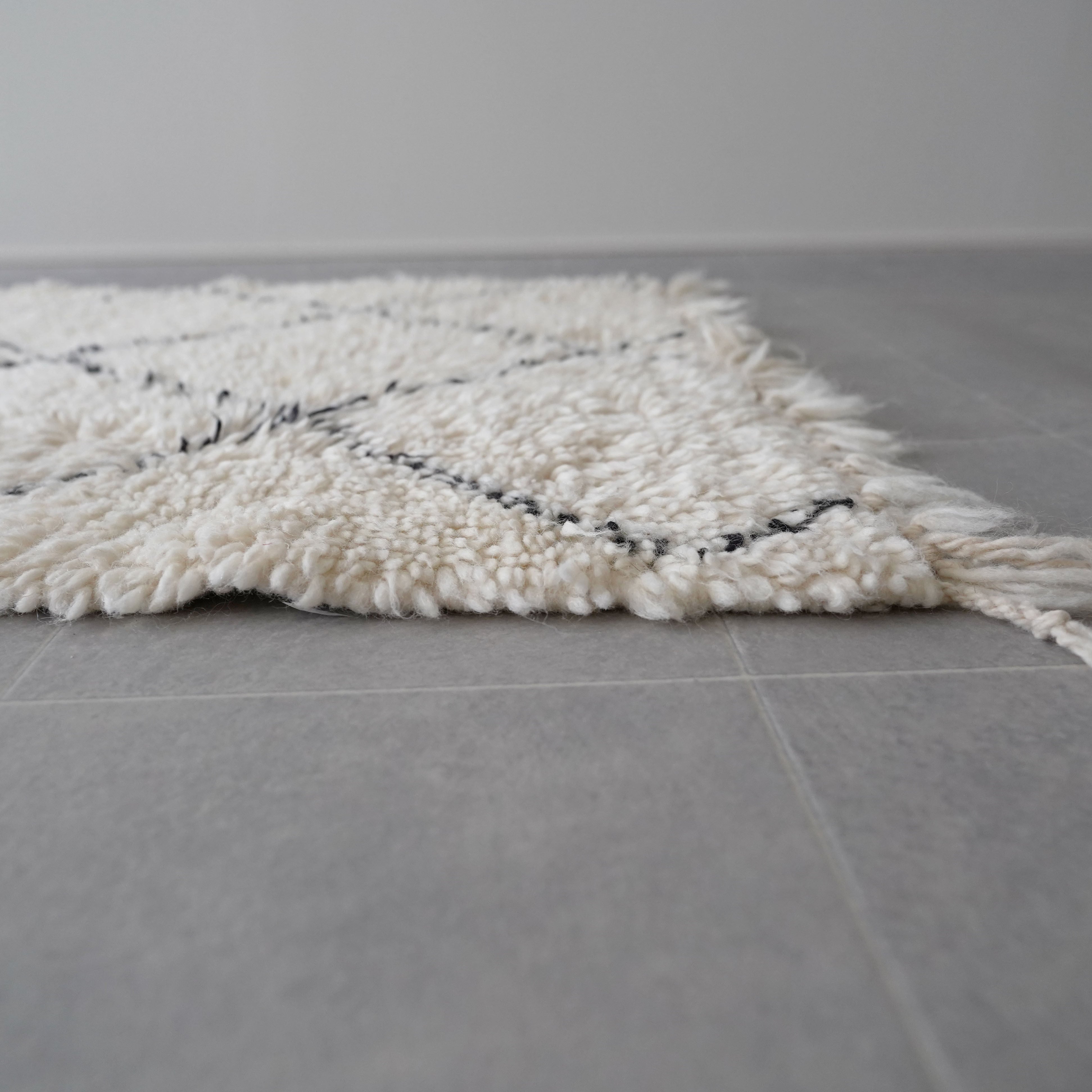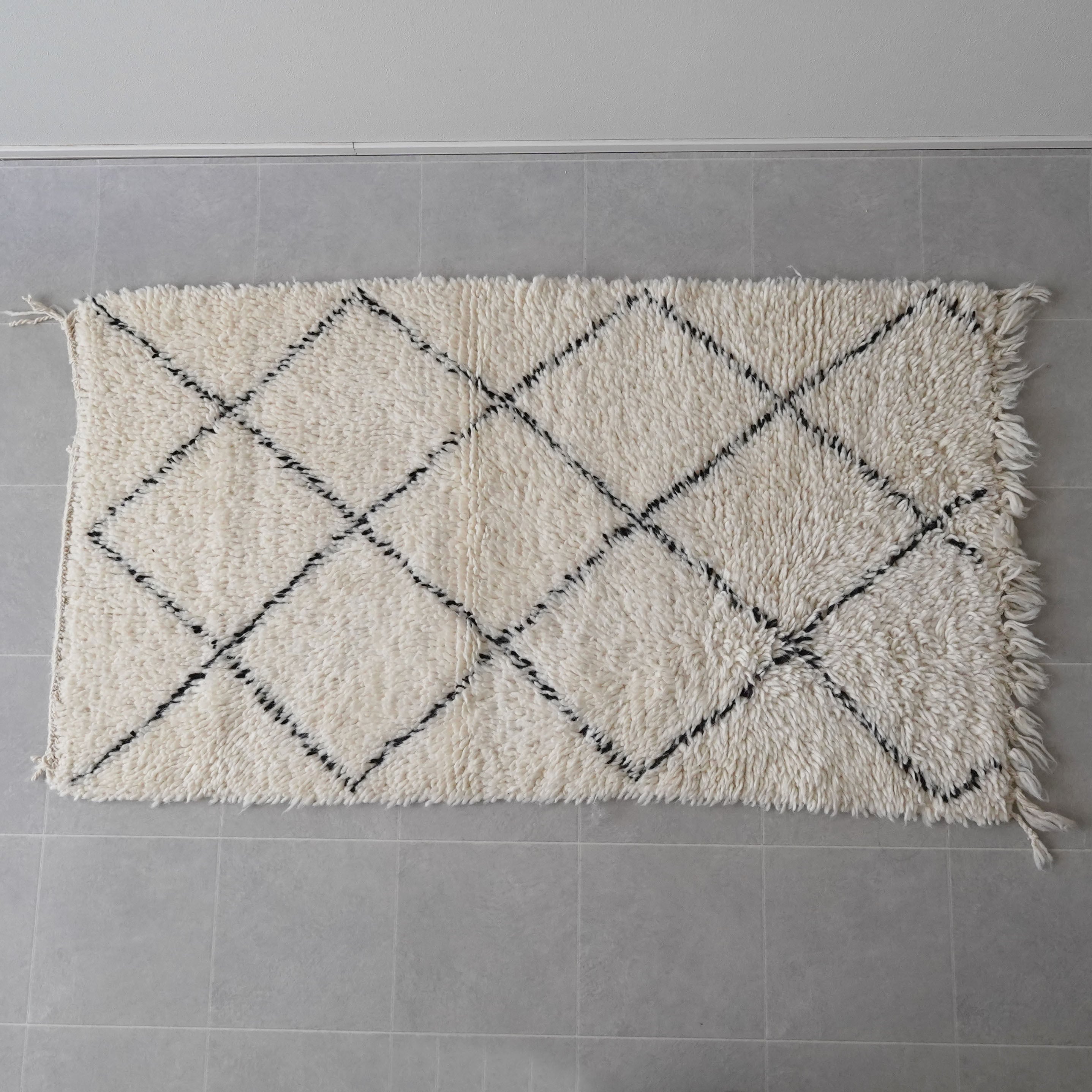 中アトラス北東部にある、ベニワレンという村で織られるラグです。染めなどを一切行わず、ウール本来のベージュやブラウンを生かしたナチュラルな色使いと、ふかふかとリッチな毛足の長さが特徴。モダンで魅力的なラグです。1960年代〜1970年代にかけて作られたものが多く、歴史のあるものについては、今では状態の良いものは希少となってしまいました。新しく作られているものには、美しい色に染めたスタイルも見られます。