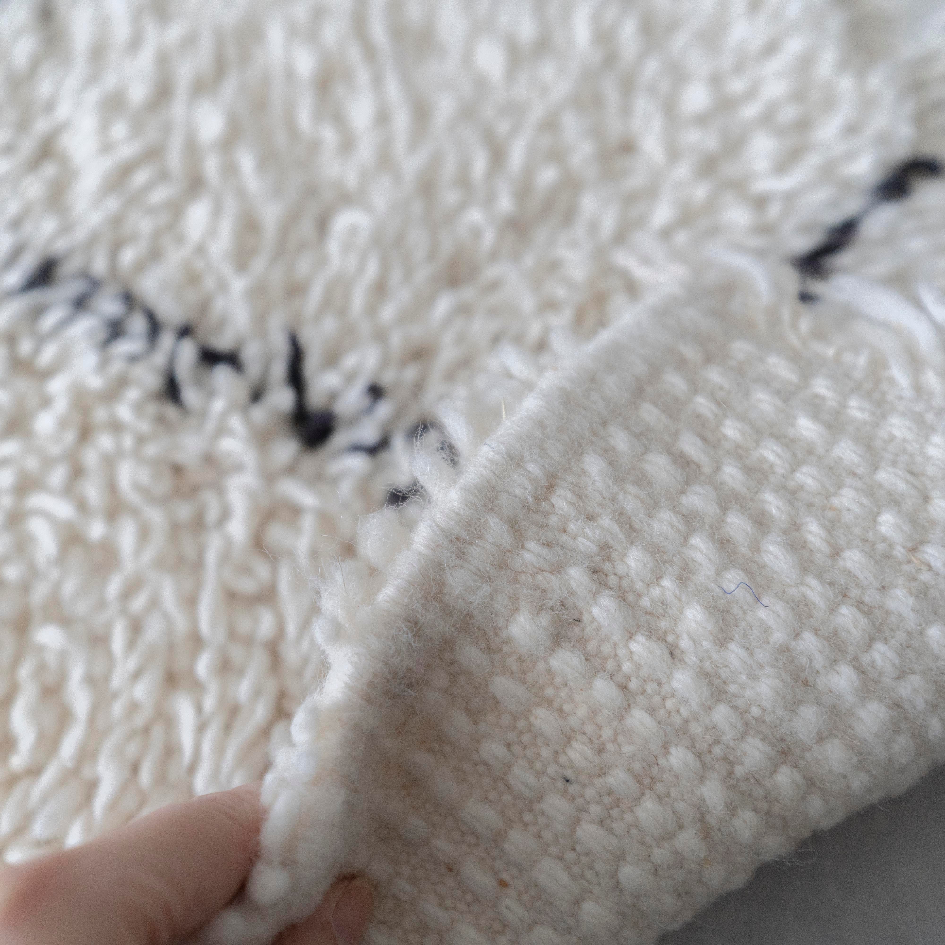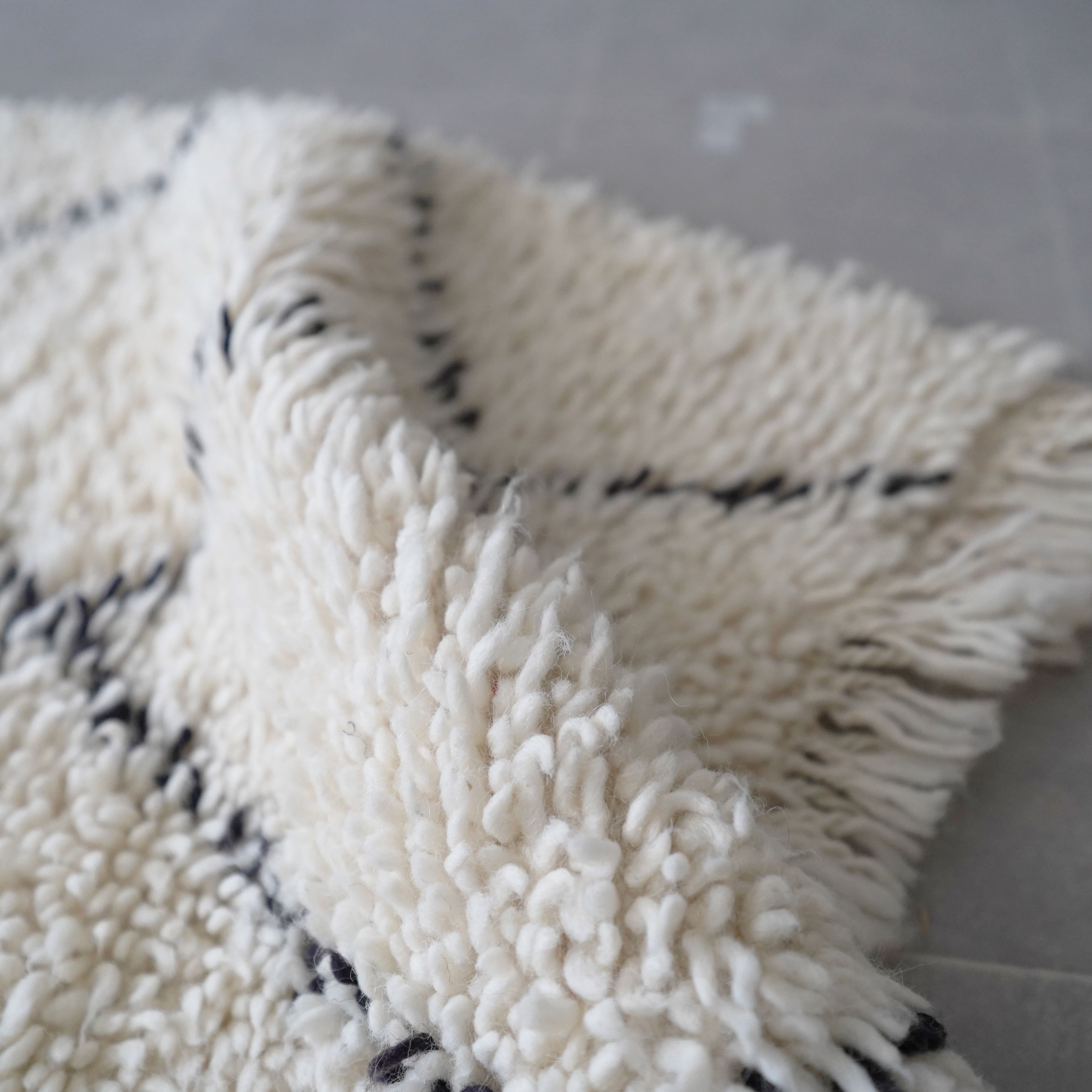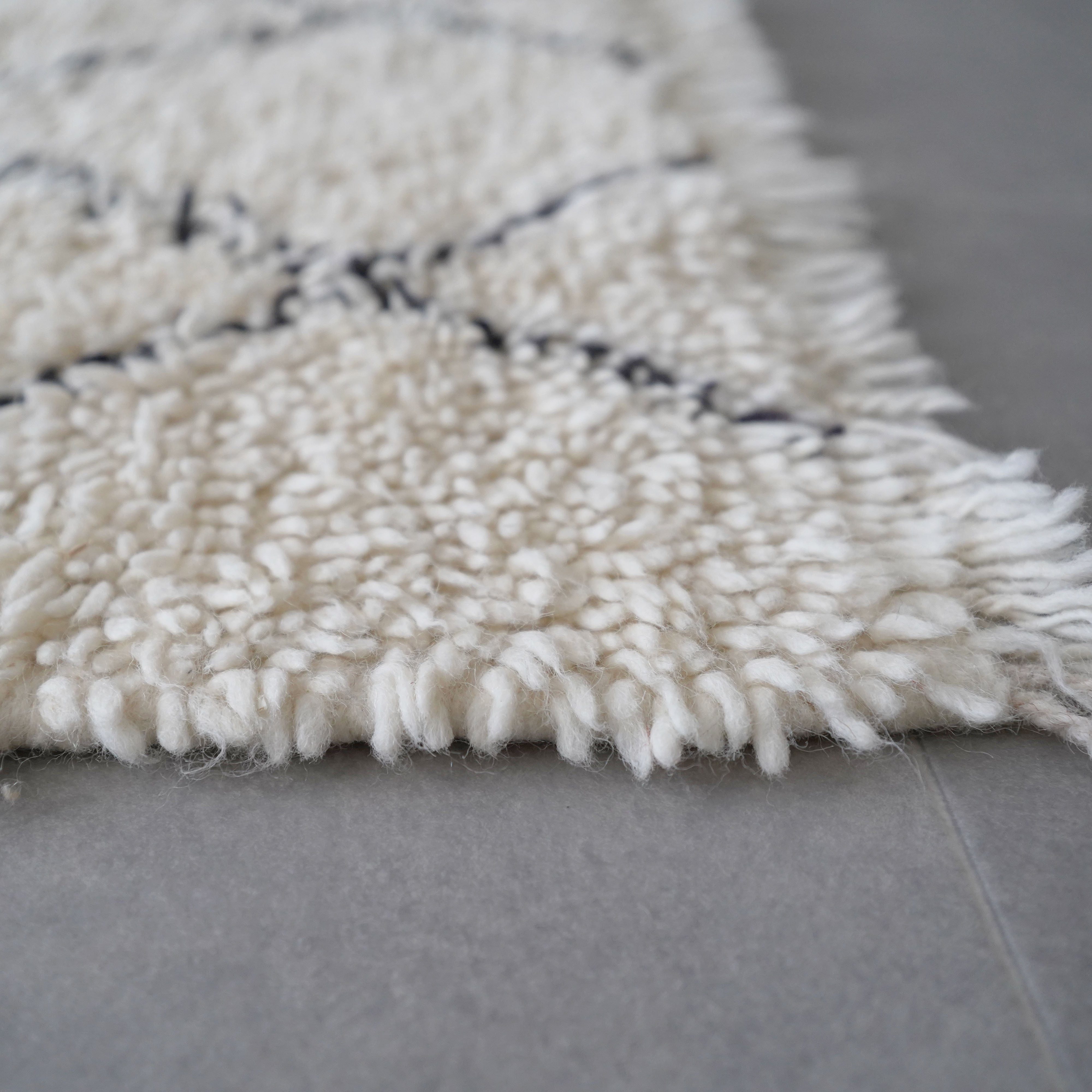 中アトラス北東部にある、ベニワレンという村で織られるラグです。染めなどを一切行わず、ウール本来のベージュやブラウンを生かしたナチュラルな色使いと、ふかふかとリッチな毛足の長さが特徴。モダンで魅力的なラグです。1960年代〜1970年代にかけて作られたものが多く、歴史のあるものについては、今では状態の良いものは希少となってしまいました。新しく作られているものには、美しい色に染めたスタイルも見られます。