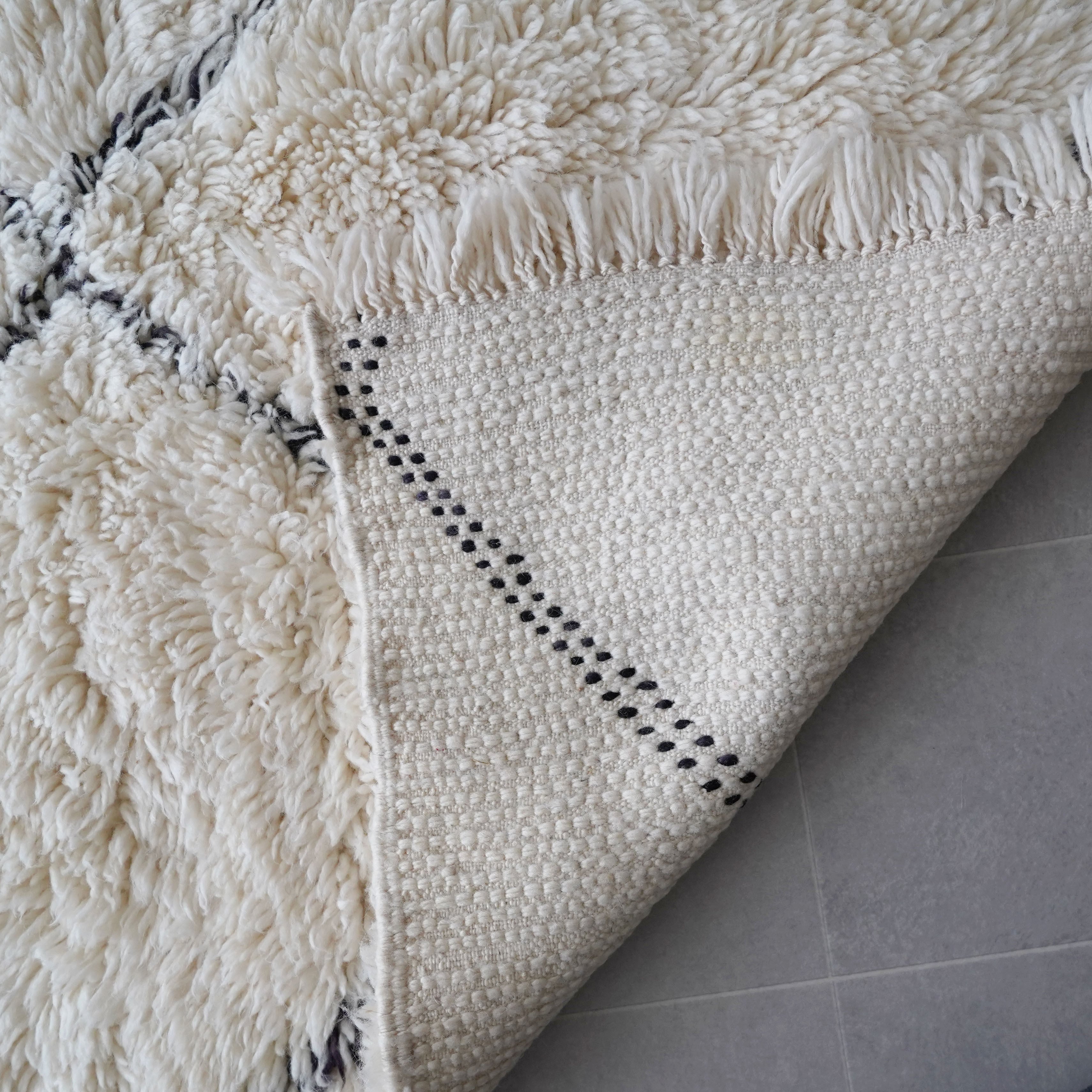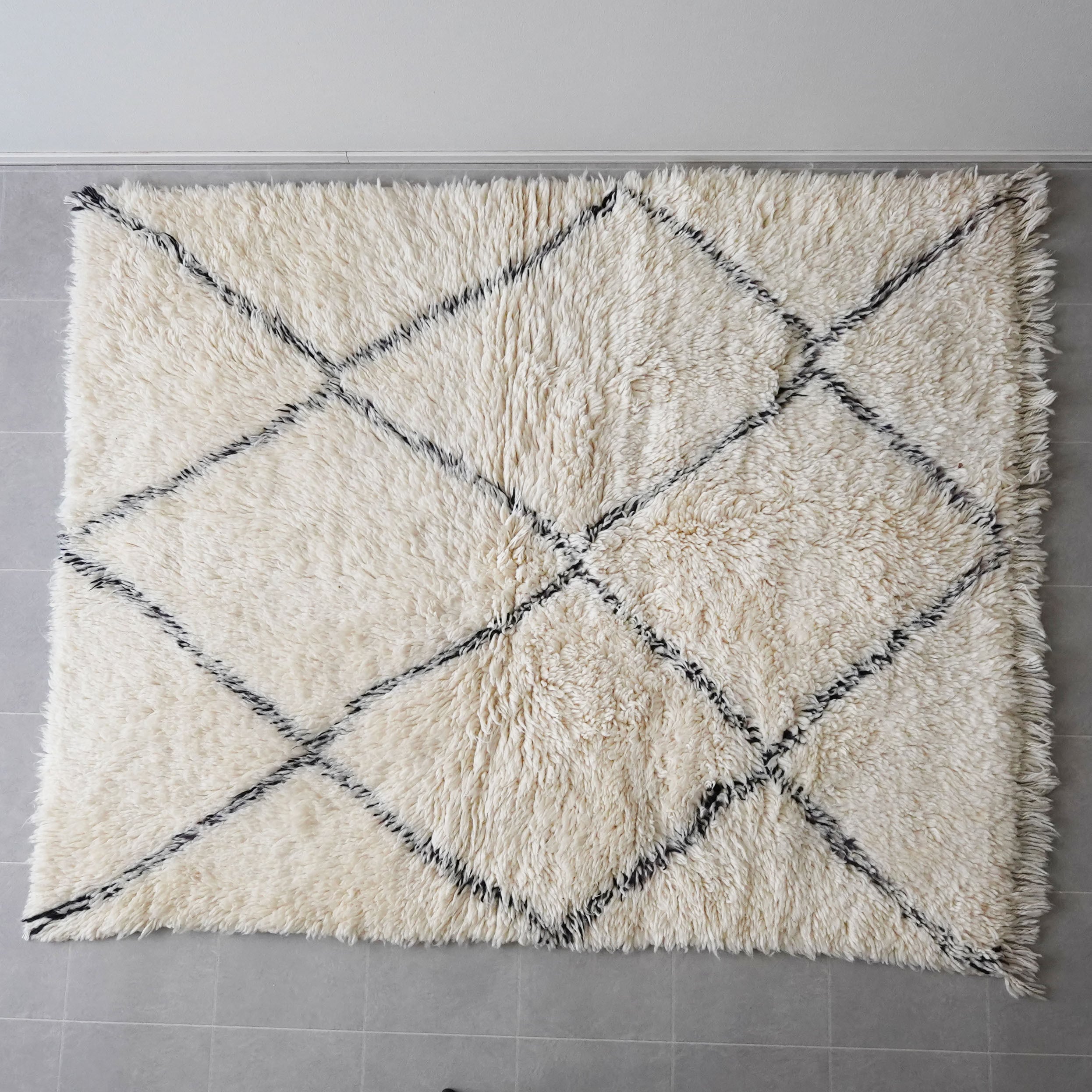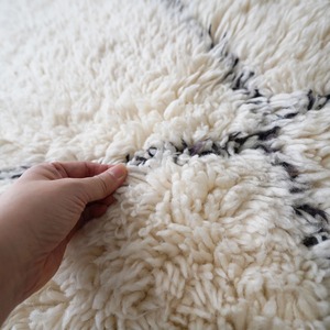 中アトラス北東部にある、ベニワレンという村で織られるラグです。染めなどを一切行わず、ウール本来のベージュやブラウンを生かしたナチュラルな色使いと、ふかふかとリッチな毛足の長さが特徴。モダンで魅力的なラグです。1960年代〜1970年代にかけて作られたものが多く、歴史のあるものについては、今では状態の良いものは希少となってしまいました。新しく作られているものには、美しい色に染めたスタイルも見られます。