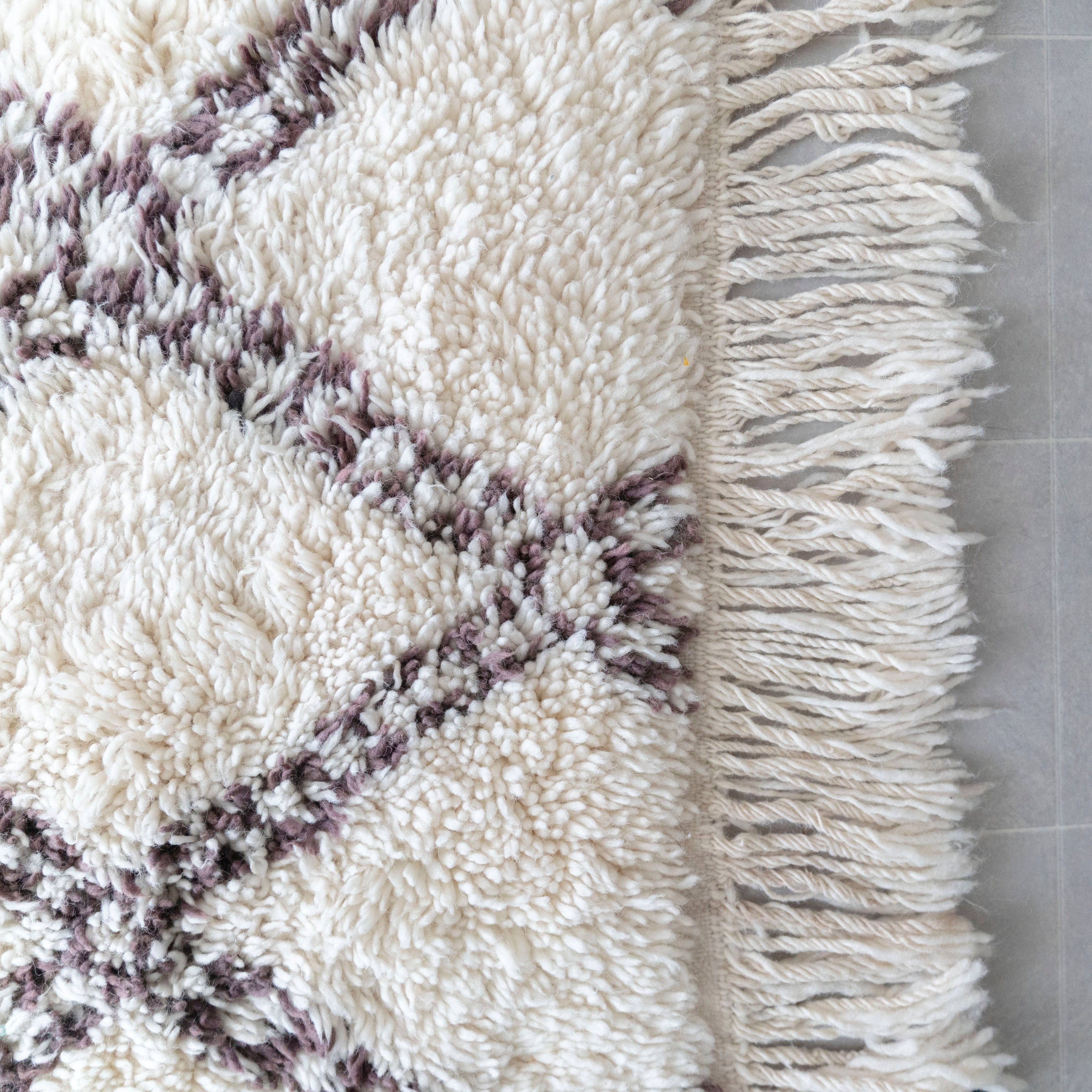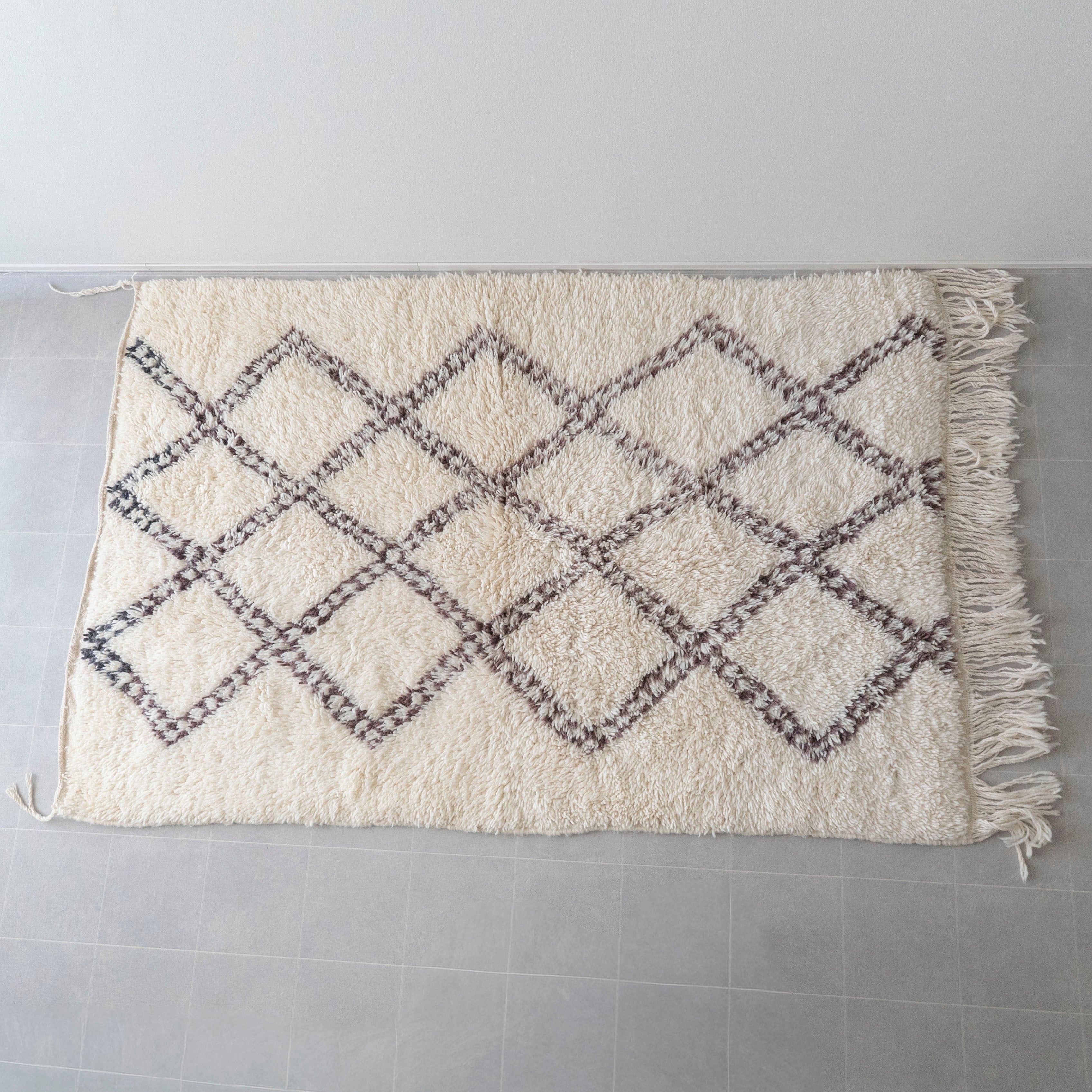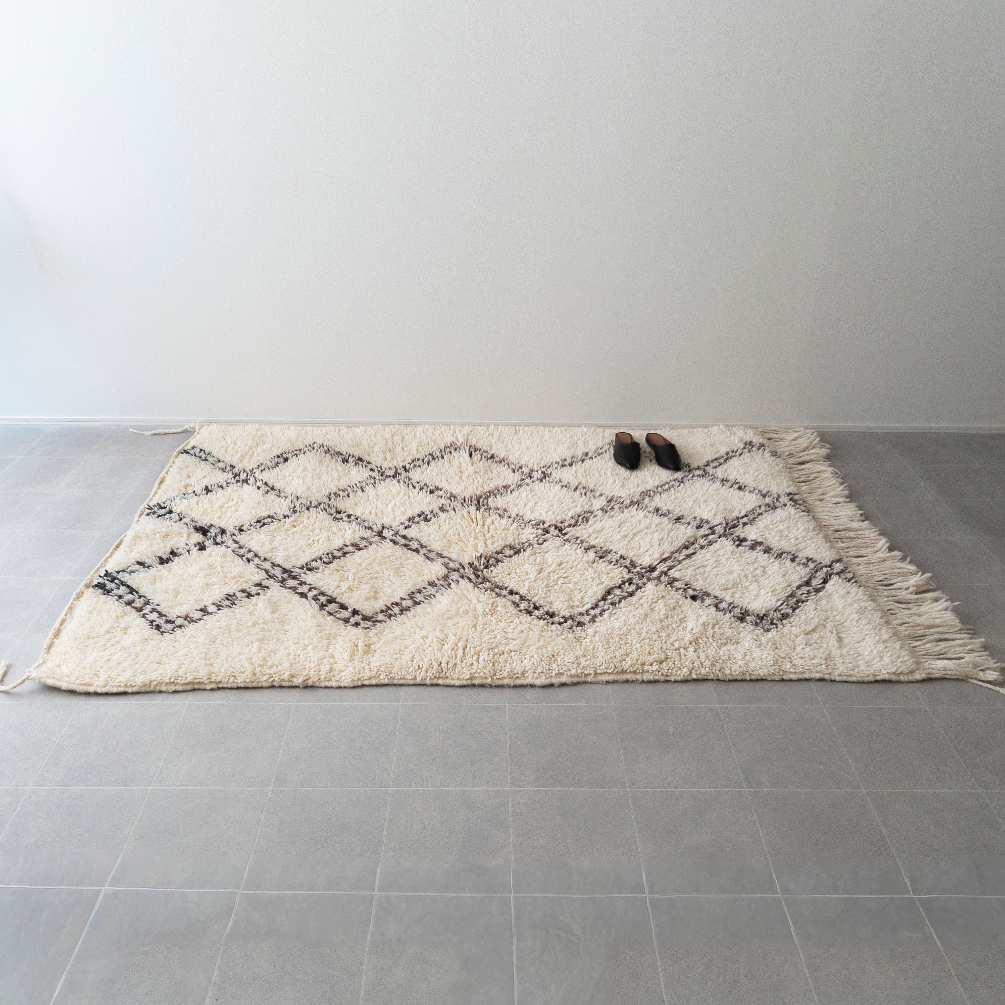 中アトラス北東部にある、ベニワレンという村で織られるラグです。染めなどを一切行わず、ウール本来のベージュやブラウンを生かしたナチュラルな色使いと、ふかふかとリッチな毛足の長さが特徴。モダンで魅力的なラグです。1960年代〜1970年代にかけて作られたものが多く、歴史のあるものについては、今では状態の良いものは希少となってしまいました。新しく作られているものには、美しい色に染めたスタイルも見られます。
