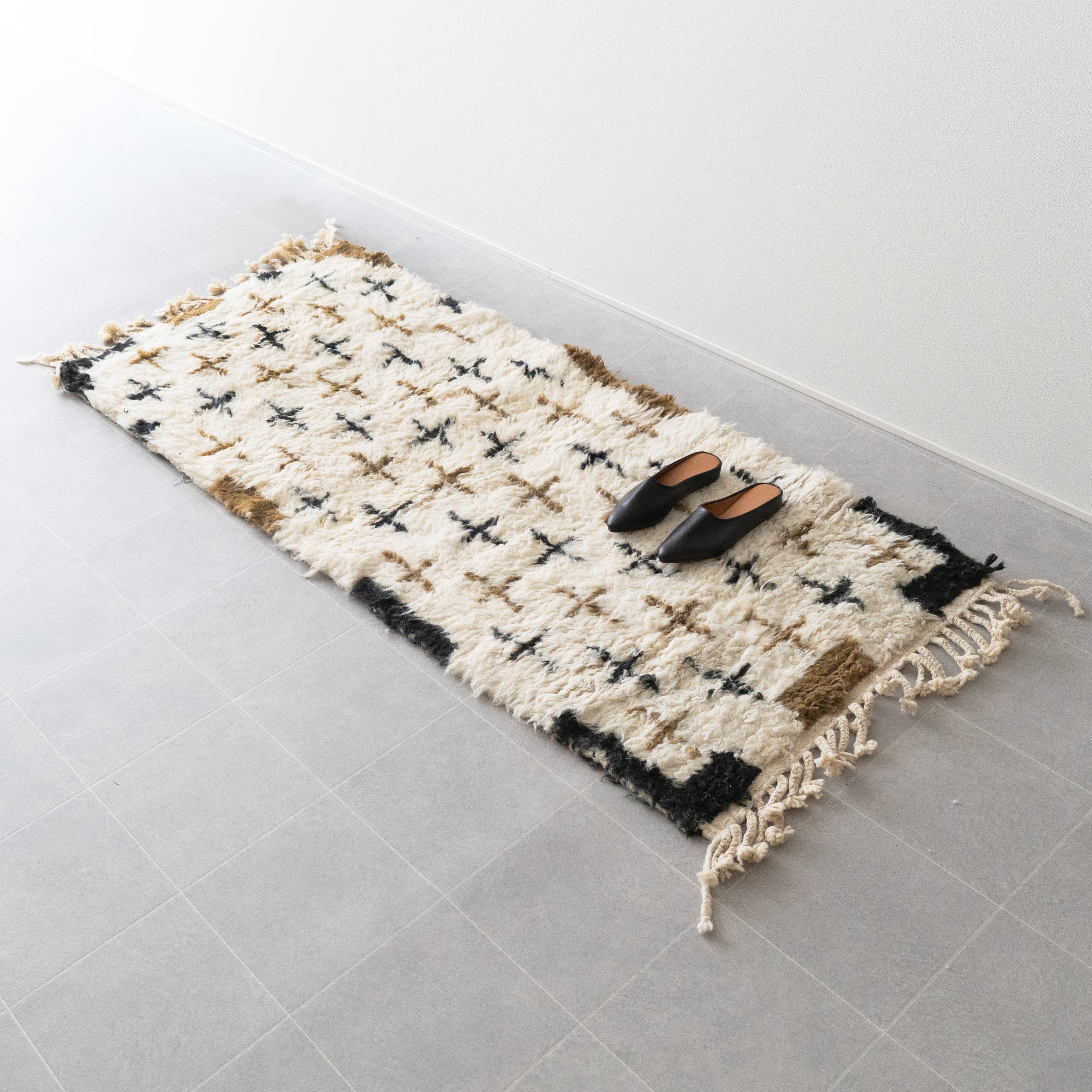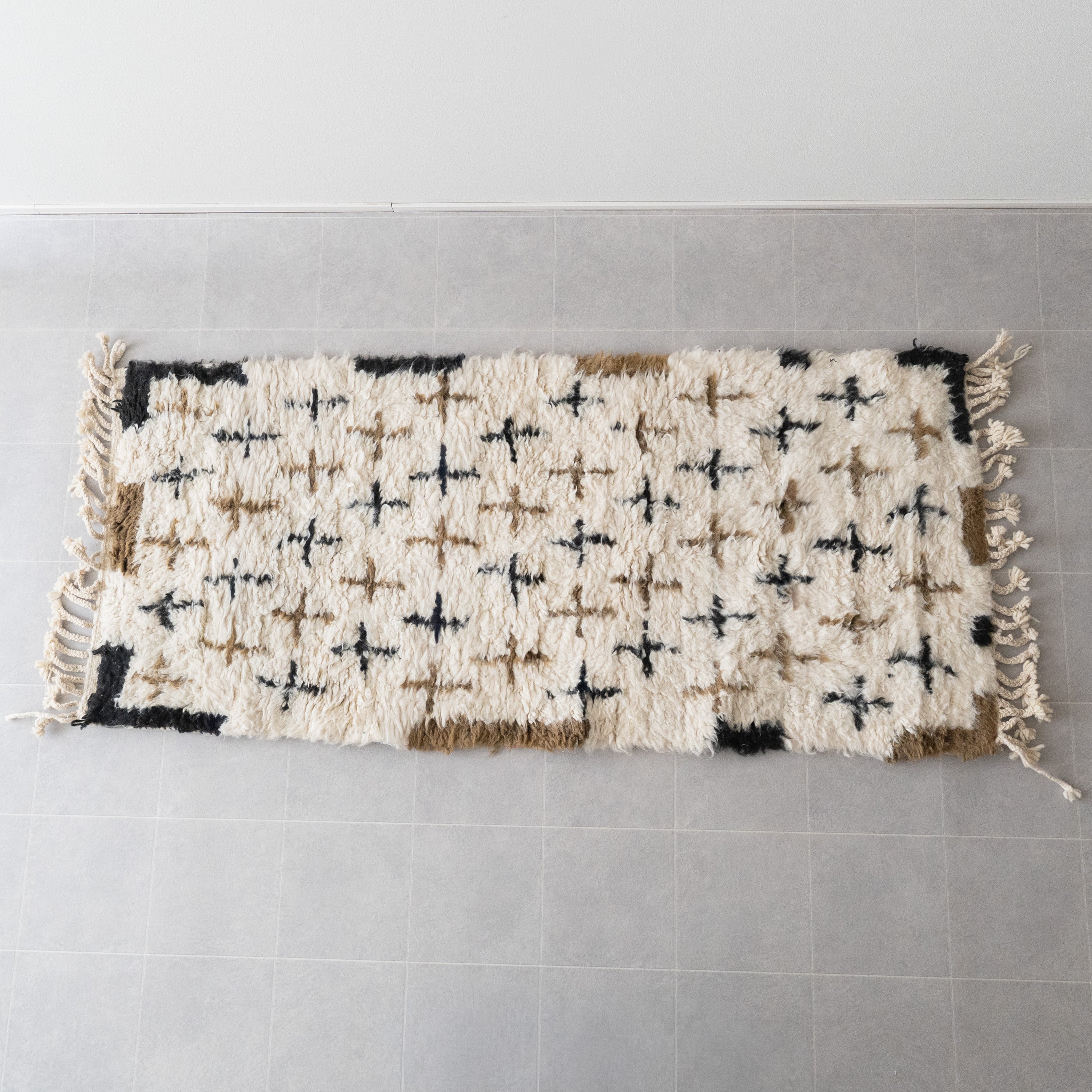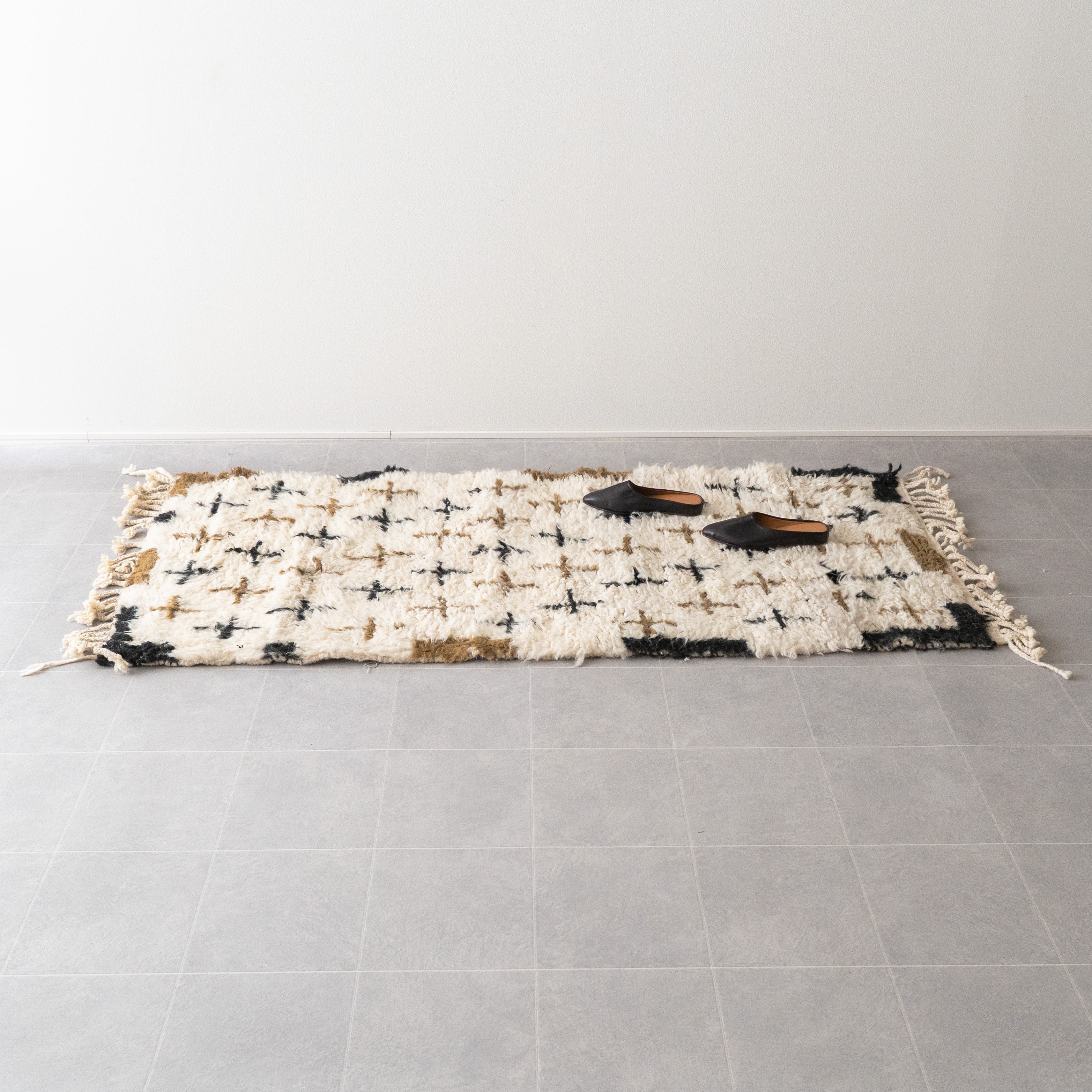 中アトラス北東部にある、ベニワレンという村で織られるラグです。染めなどを一切行わず、ウール本来のベージュやブラウンを生かしたナチュラルな色使いと、ふかふかとリッチな毛足の長さが特徴。モダンで魅力的なラグです。1960年代〜1970年代にかけて作られたものが多く、歴史のあるものについては、今では状態の良いものは希少となってしまいました。新しく作られているものには、美しい色に染めたスタイルも見られます。