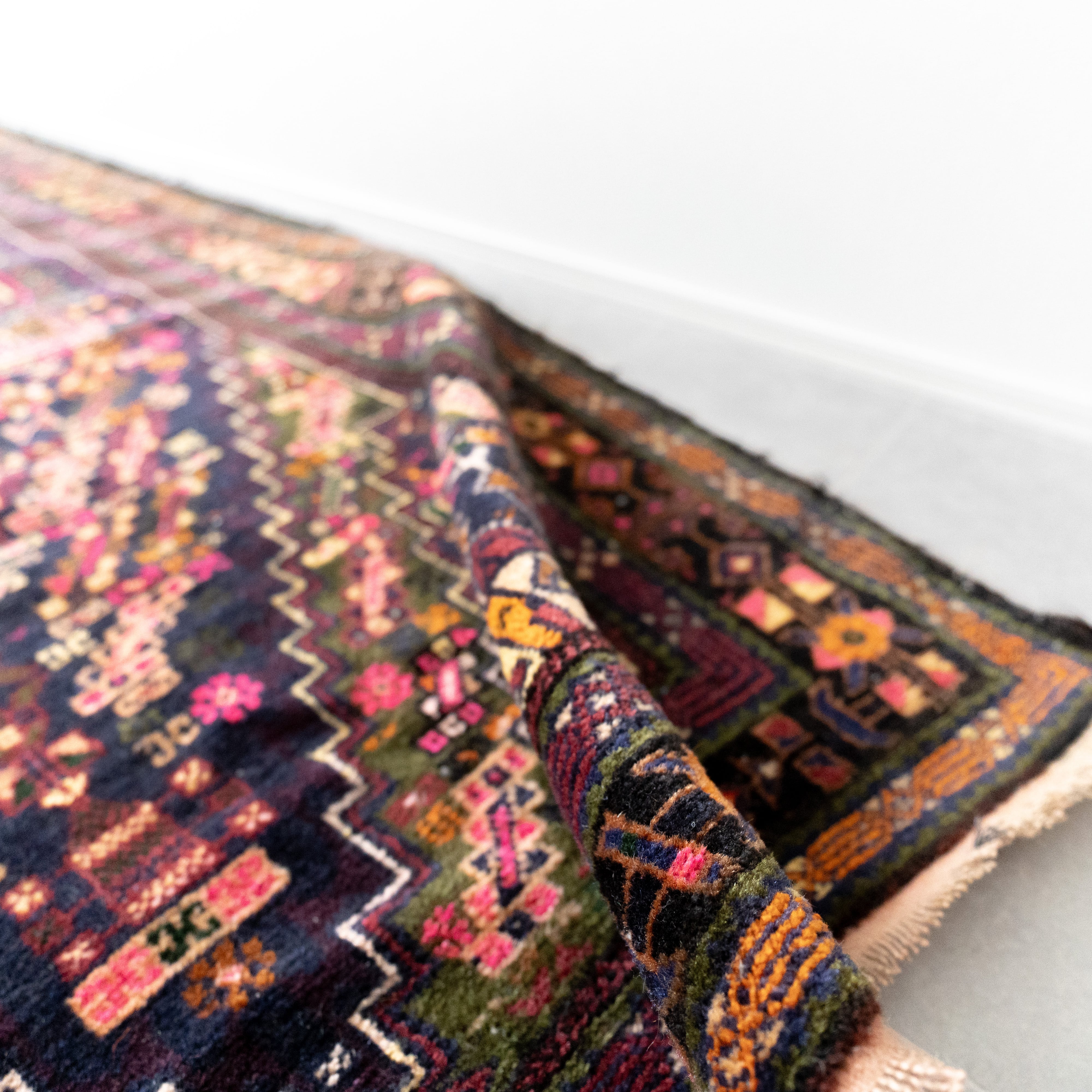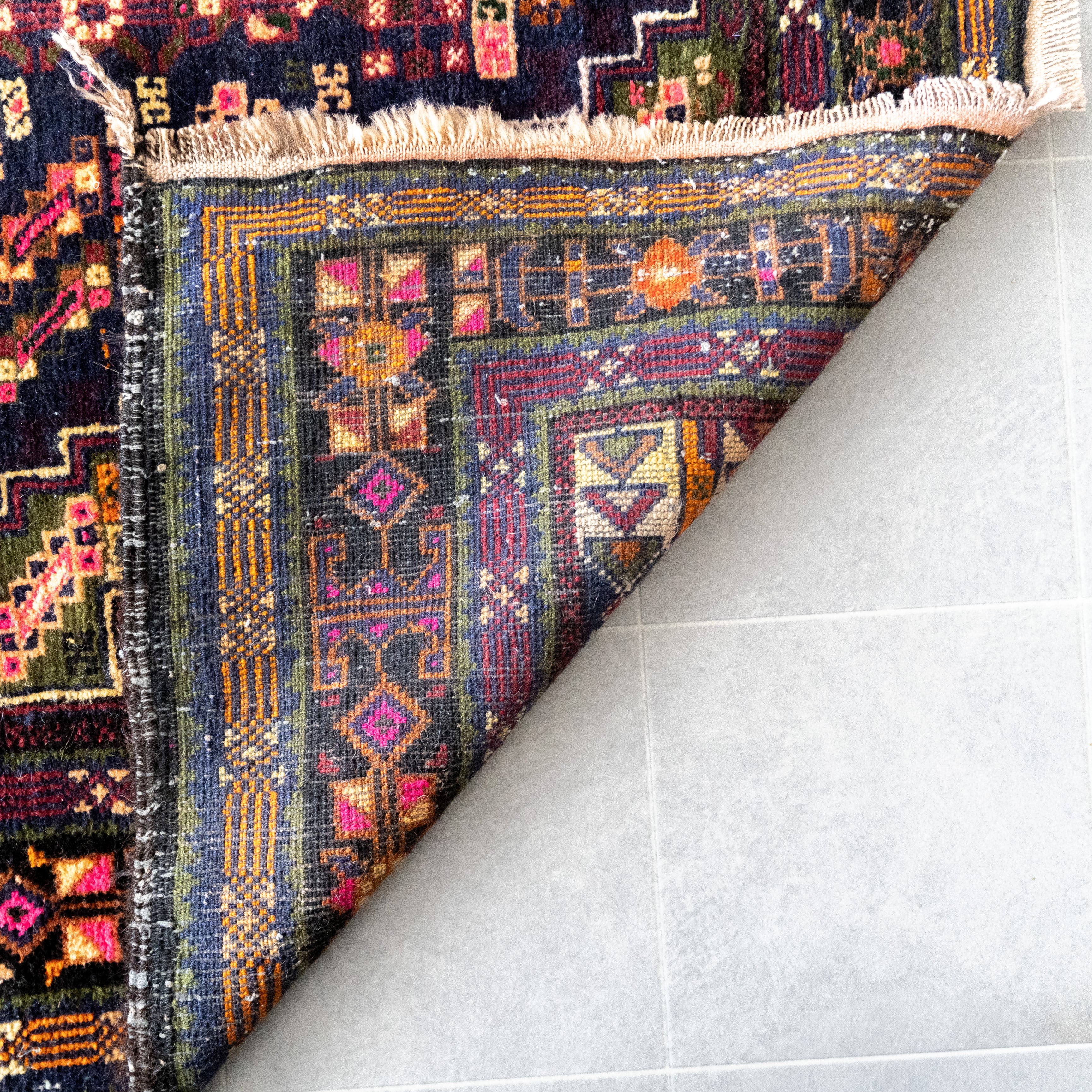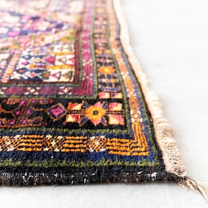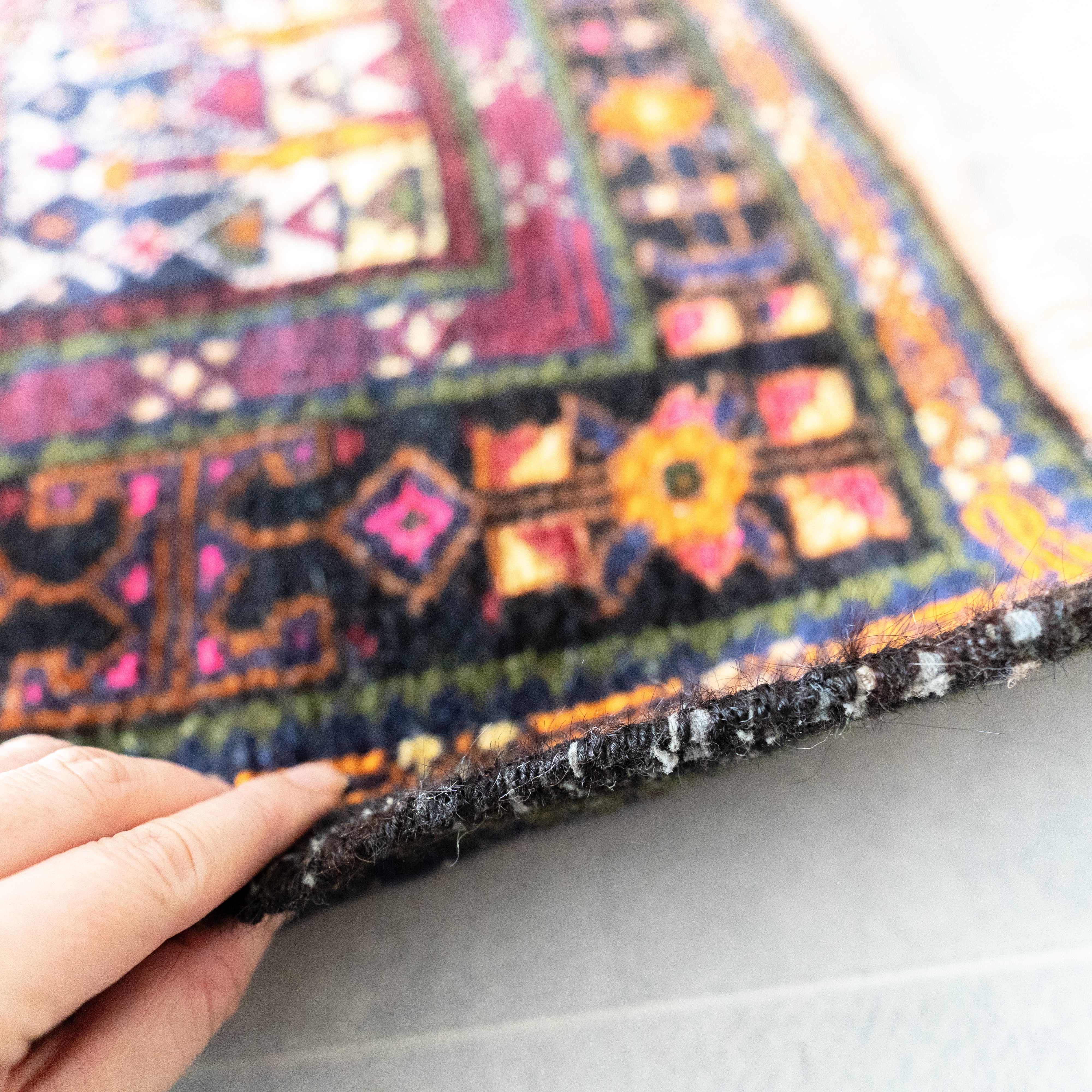 多色使いですがが、経年による色褪せで色が強く出すぎず、全体の色が馴染んでお洒落でモダンな印象です。通常よりも番手の細いウール糸を使った繊細な織りから生み出される手仕事は圧巻で出来栄え。経年でウールに艶が出てヴェルベットのような表情を浮かべます。