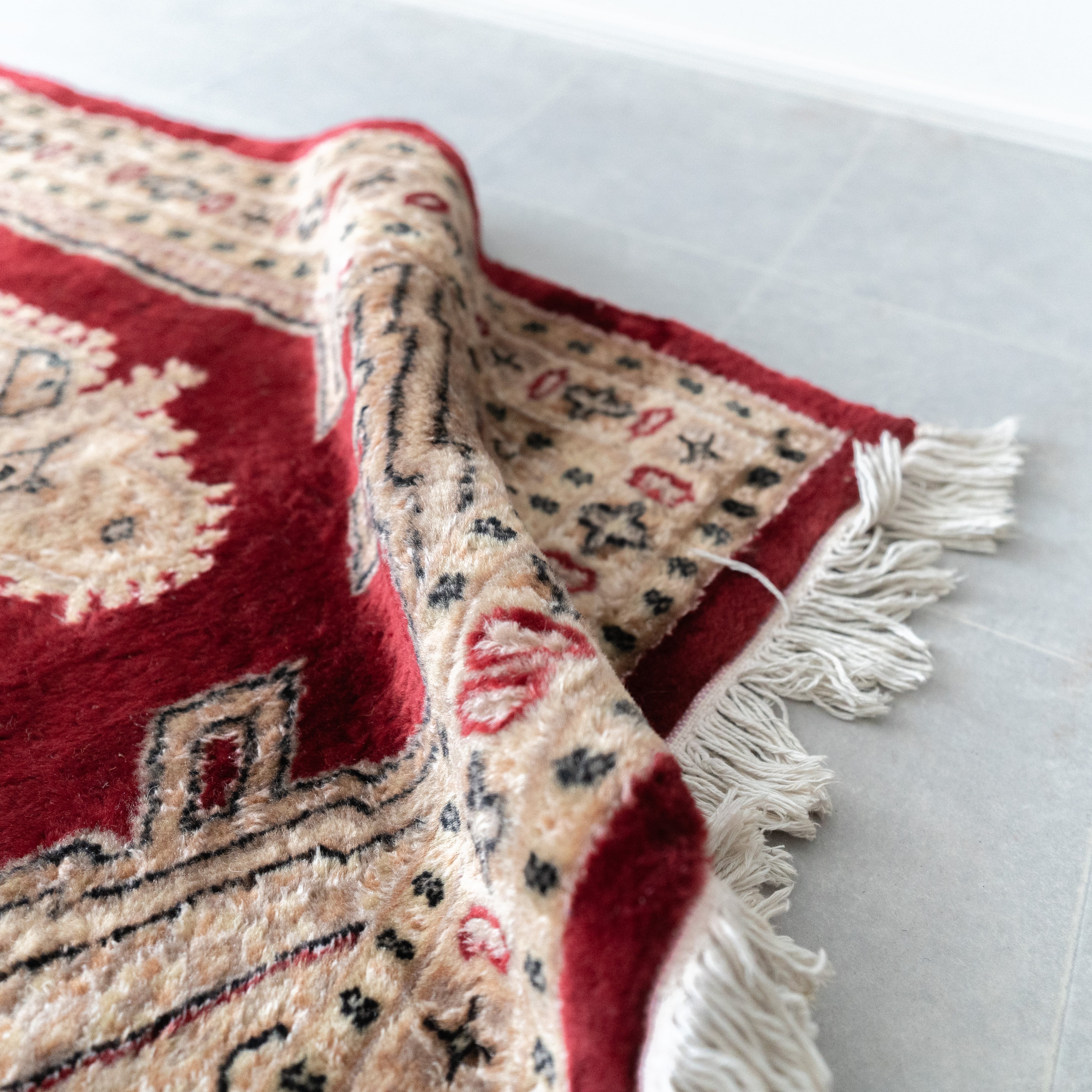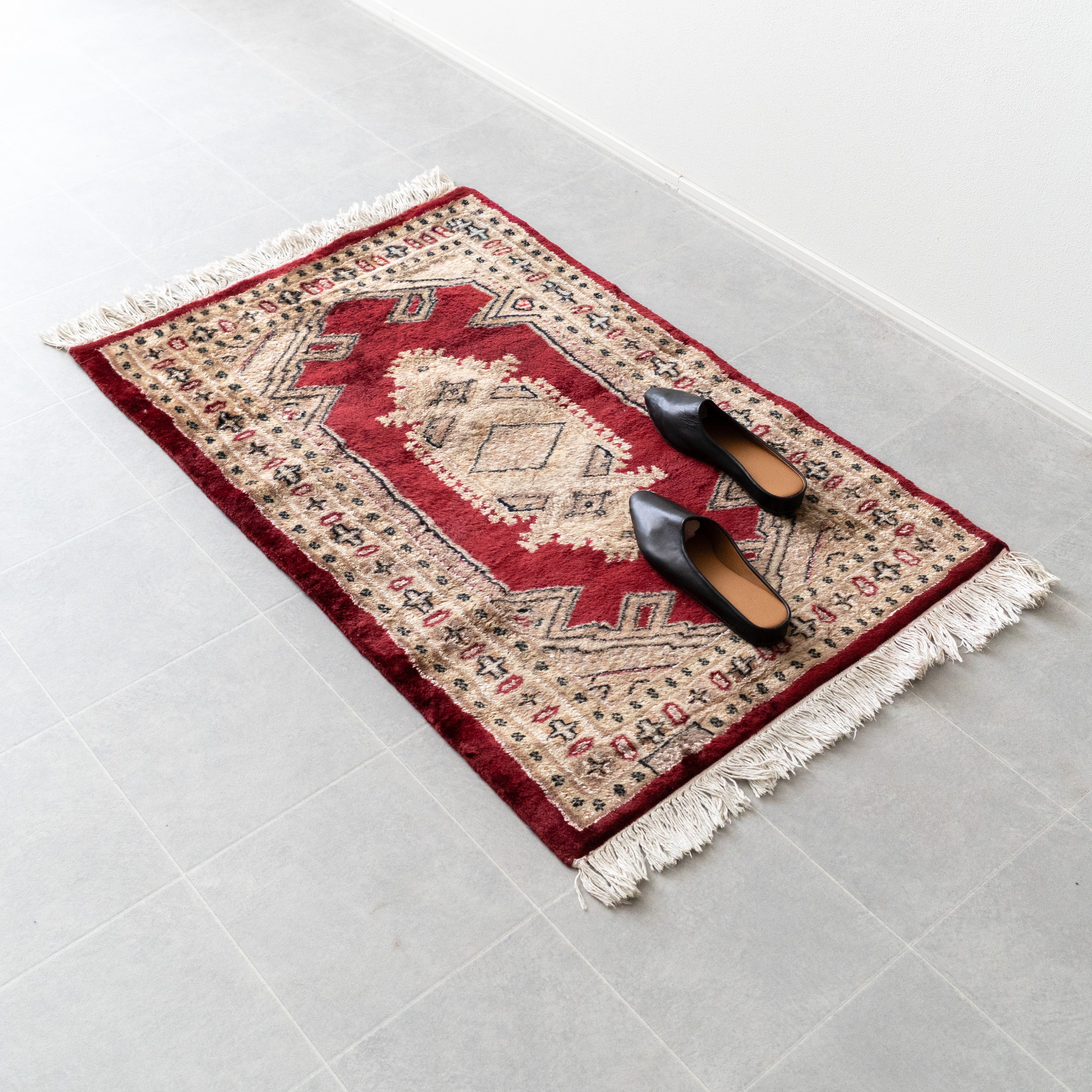 目が詰まったしっかりした織りですが薄手で扱いやすさが魅力。玄関やアクセントラグにぴったり。ヴィンテージの木製家具と合わせて雰囲気たっぷりなモダンインテリアをお楽しみください。