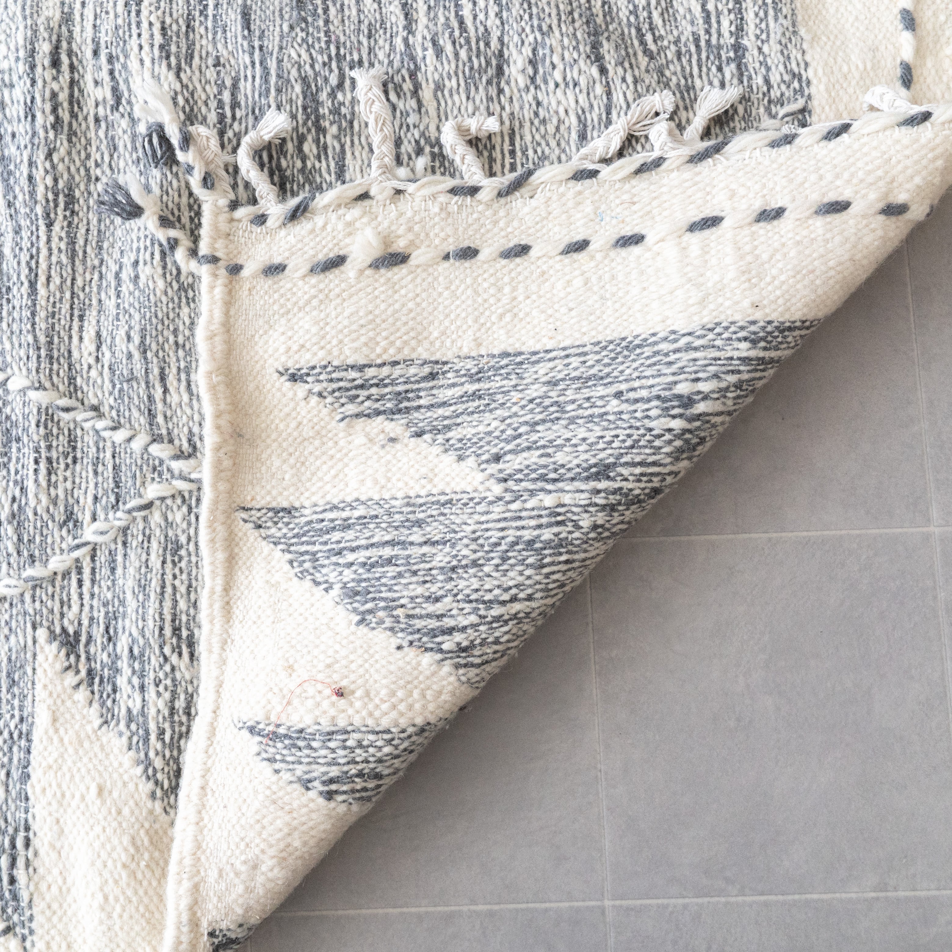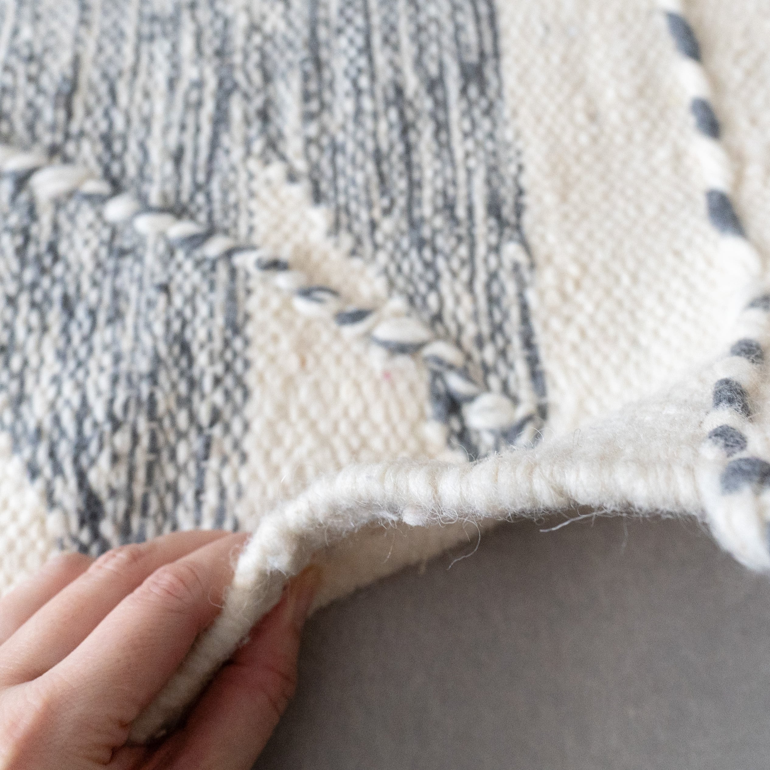 他のウールラグに比べ柔らかなタッチで扱いやすいのもポイント。キリムのしっかりとした織りながらも比較的軽くて移動がしやすいので、模様替えや収納にも負担が少ないです。