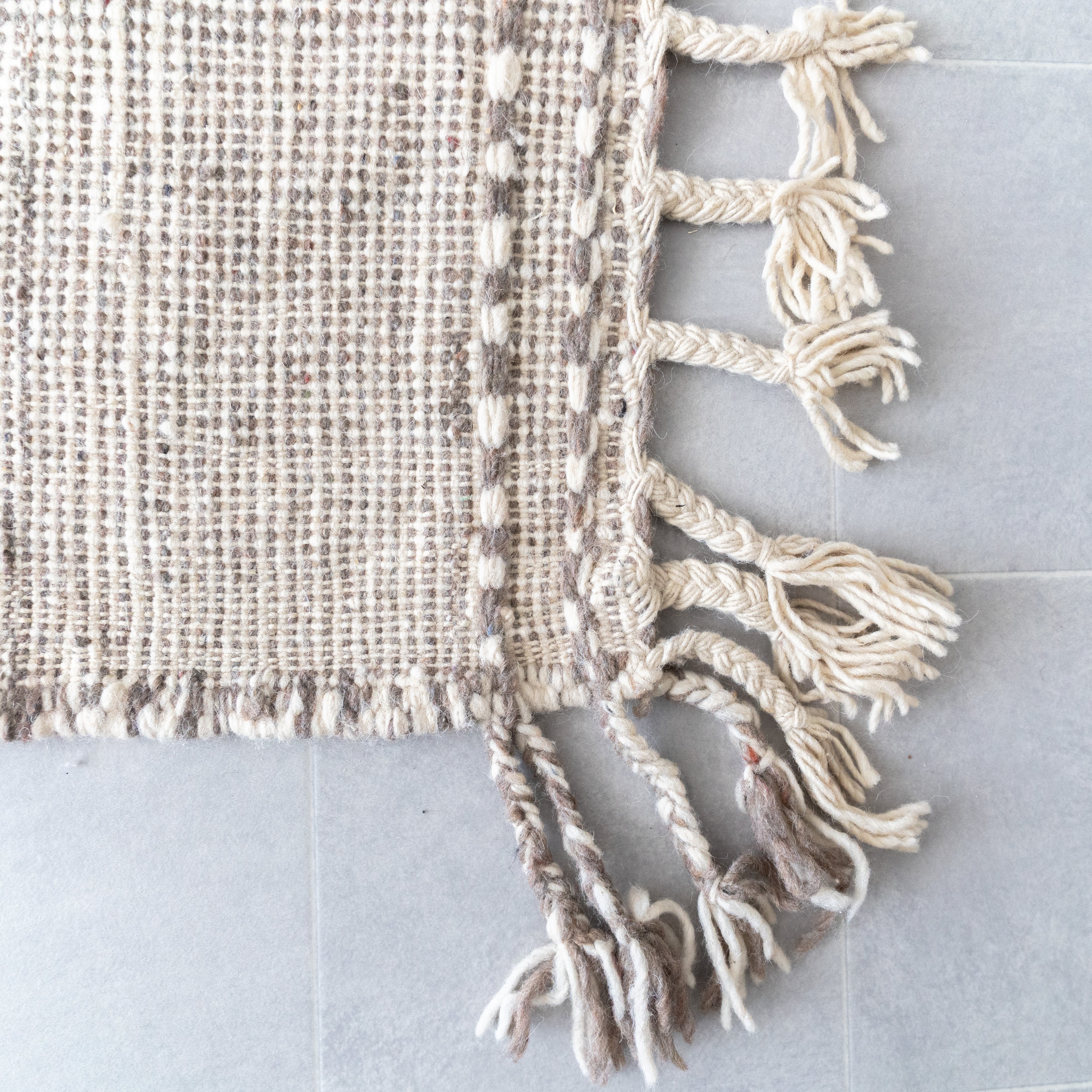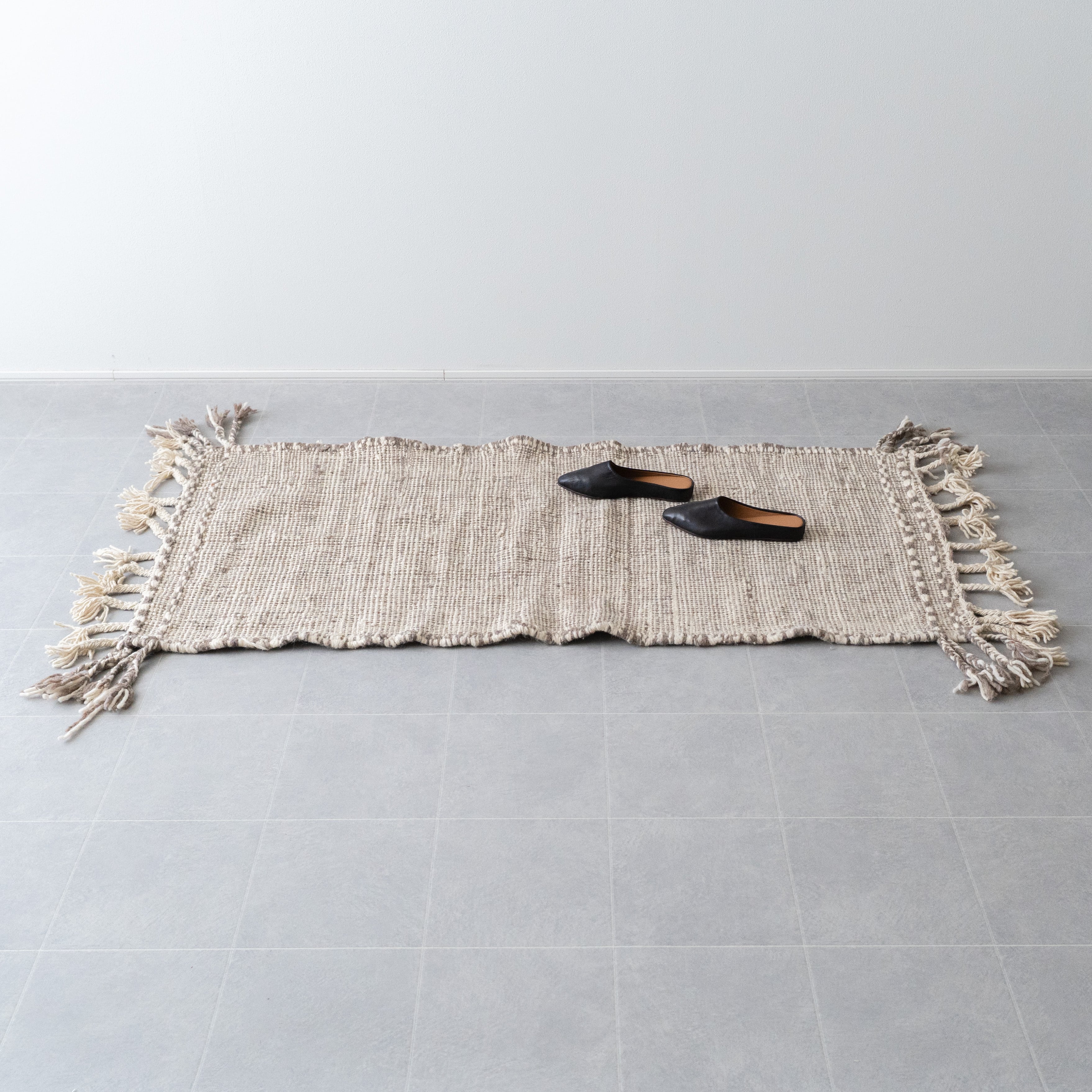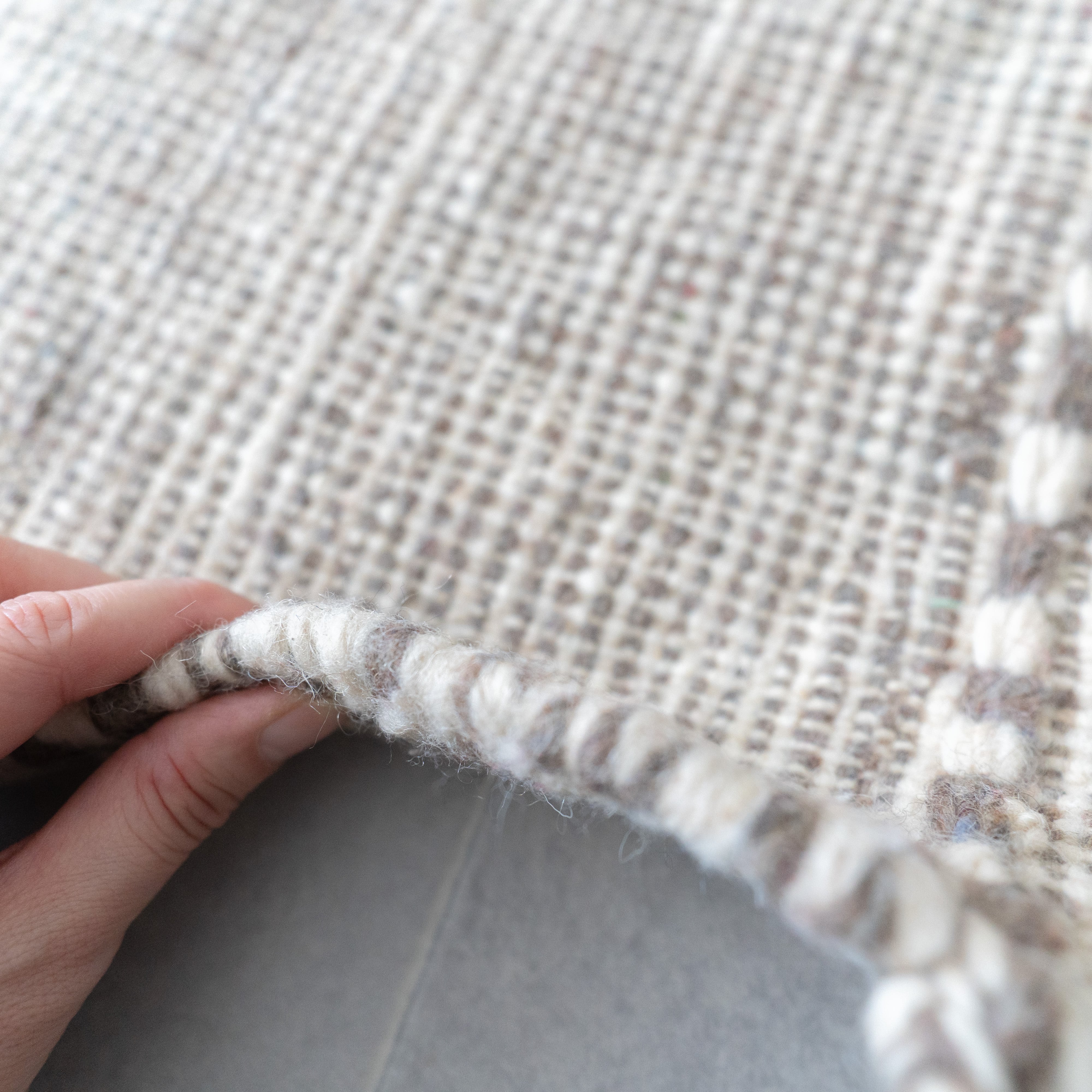 他のウールラグに比べ柔らかなタッチで扱いやすいのもポイント。キリムのしっかりとした織りながらも比較的軽くて移動がしやすいので、模様替えや収納にも負担が少ないです。