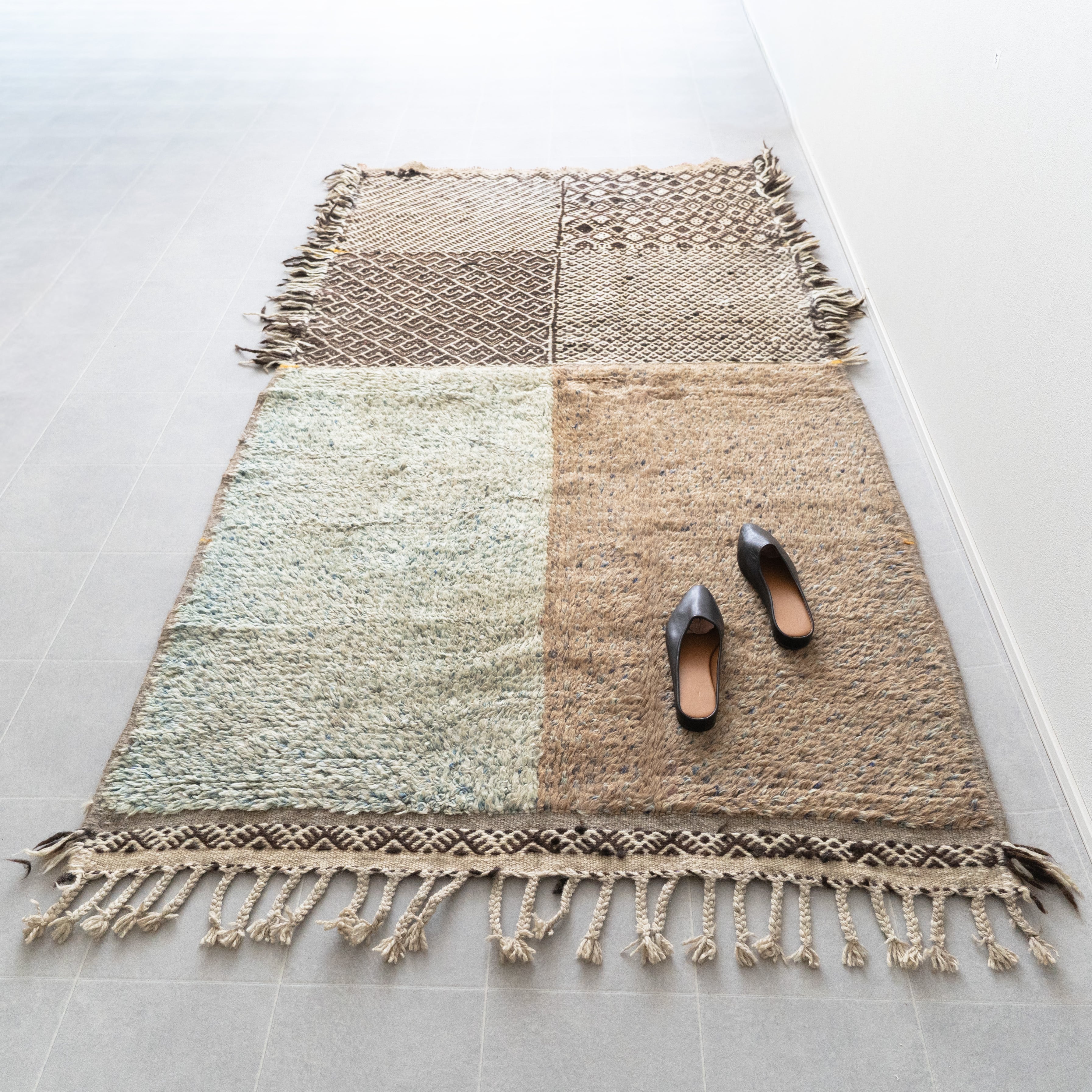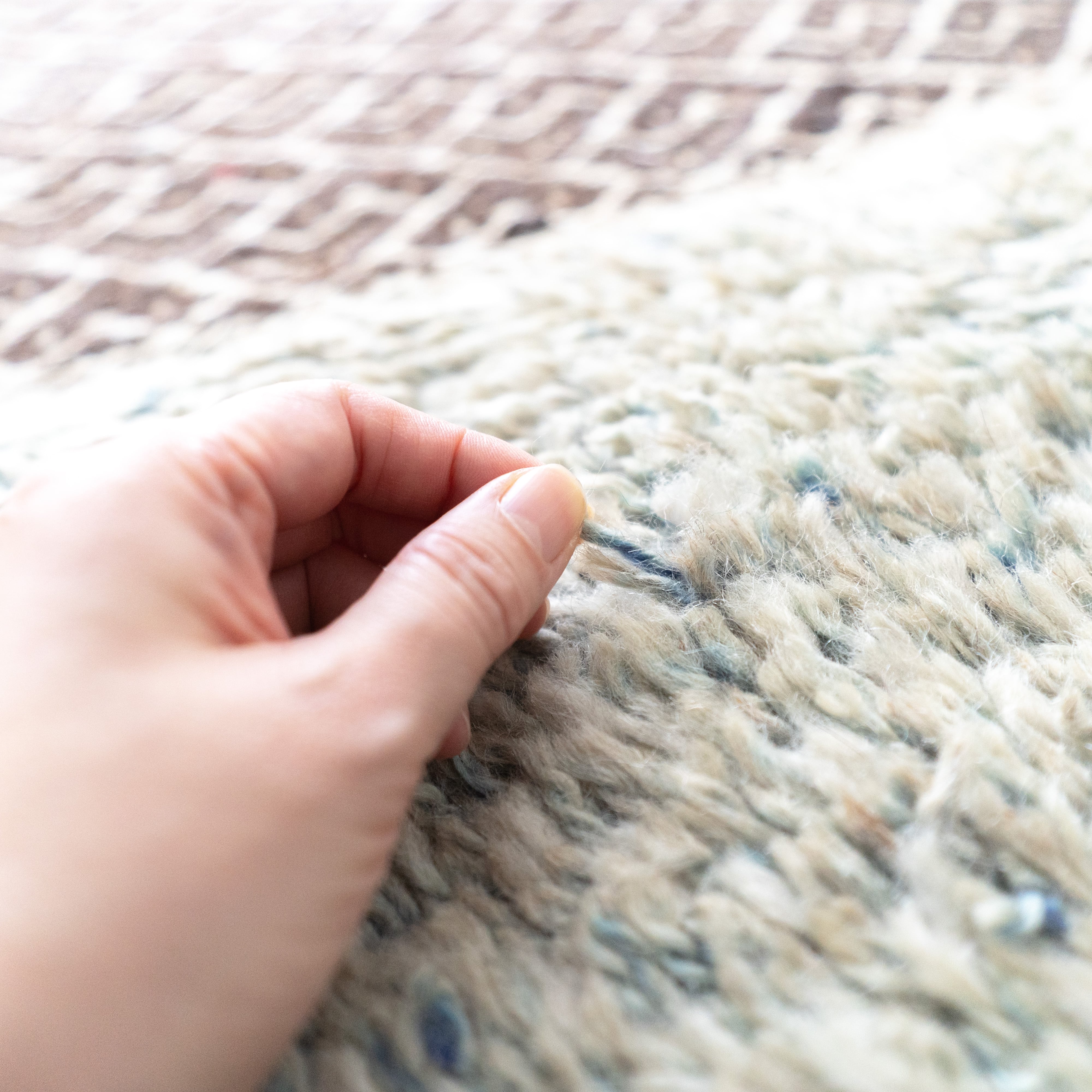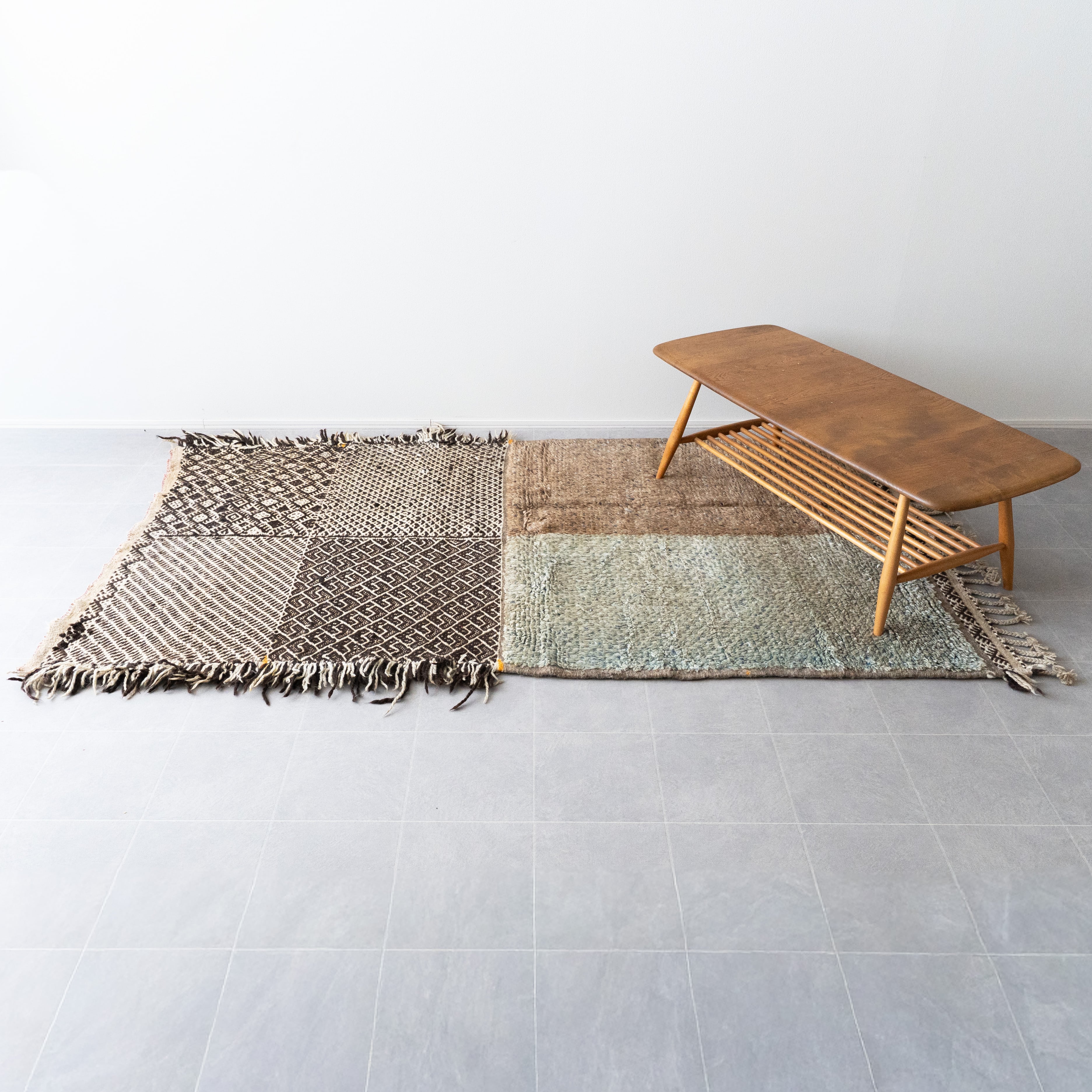 新品ですがヴィンテージのような風格も兼ね備えていて、経年で艶が増す上質な素材と高度な技術で織られたラグは、これから何十年も時を重ねるのが楽しみになります。