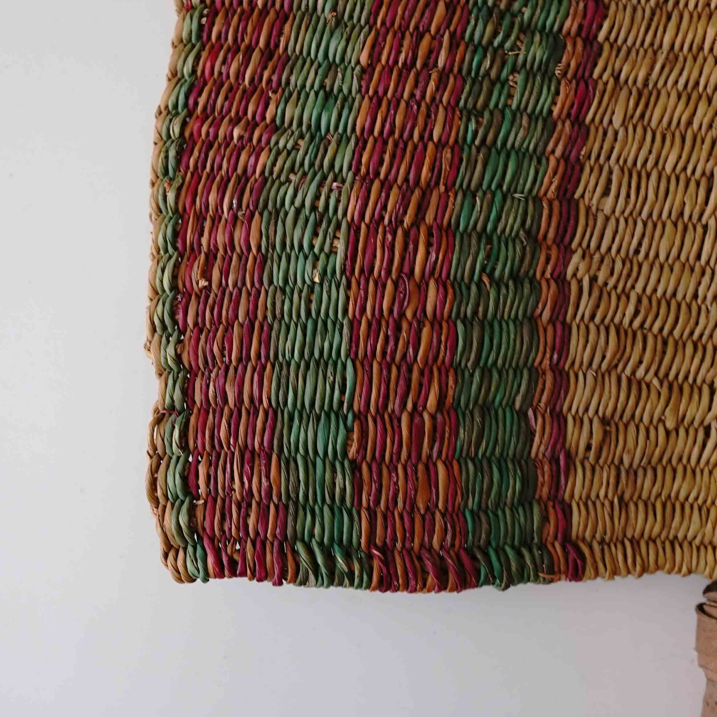 絶妙な配色と水草のナチュラルな雰囲気が特徴。持ち手は革で巻かれていてアクセントになっています。鮮やかな色味ですが、ヴィンテージなので程よく色褪せしていて洗練された印象です。