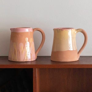 すっきりとしたスタイルのジャグにニュアンスのある釉薬を掛けたボディ。赤土を用いた素焼きのテクスチャーと、艶のある釉薬のコントラストが美しい仕上がりです。