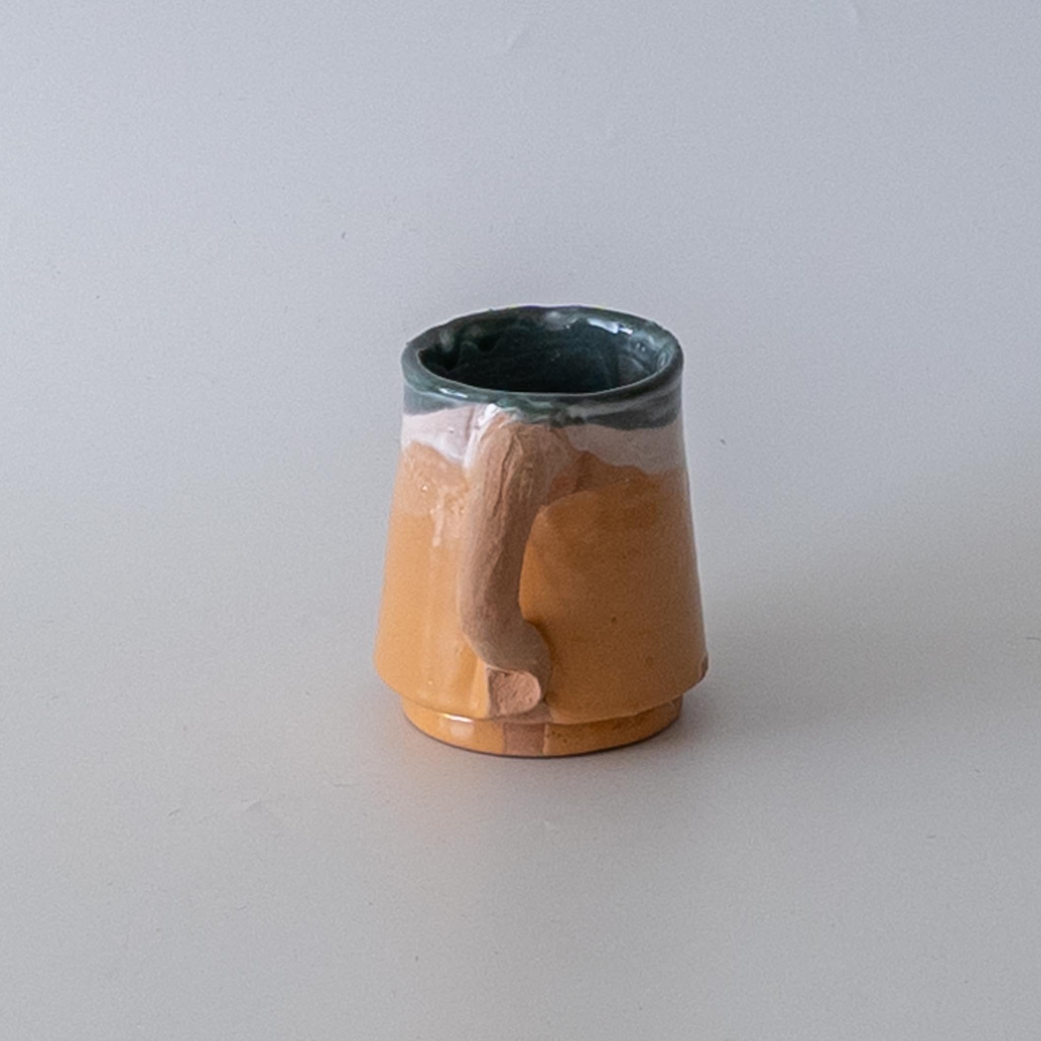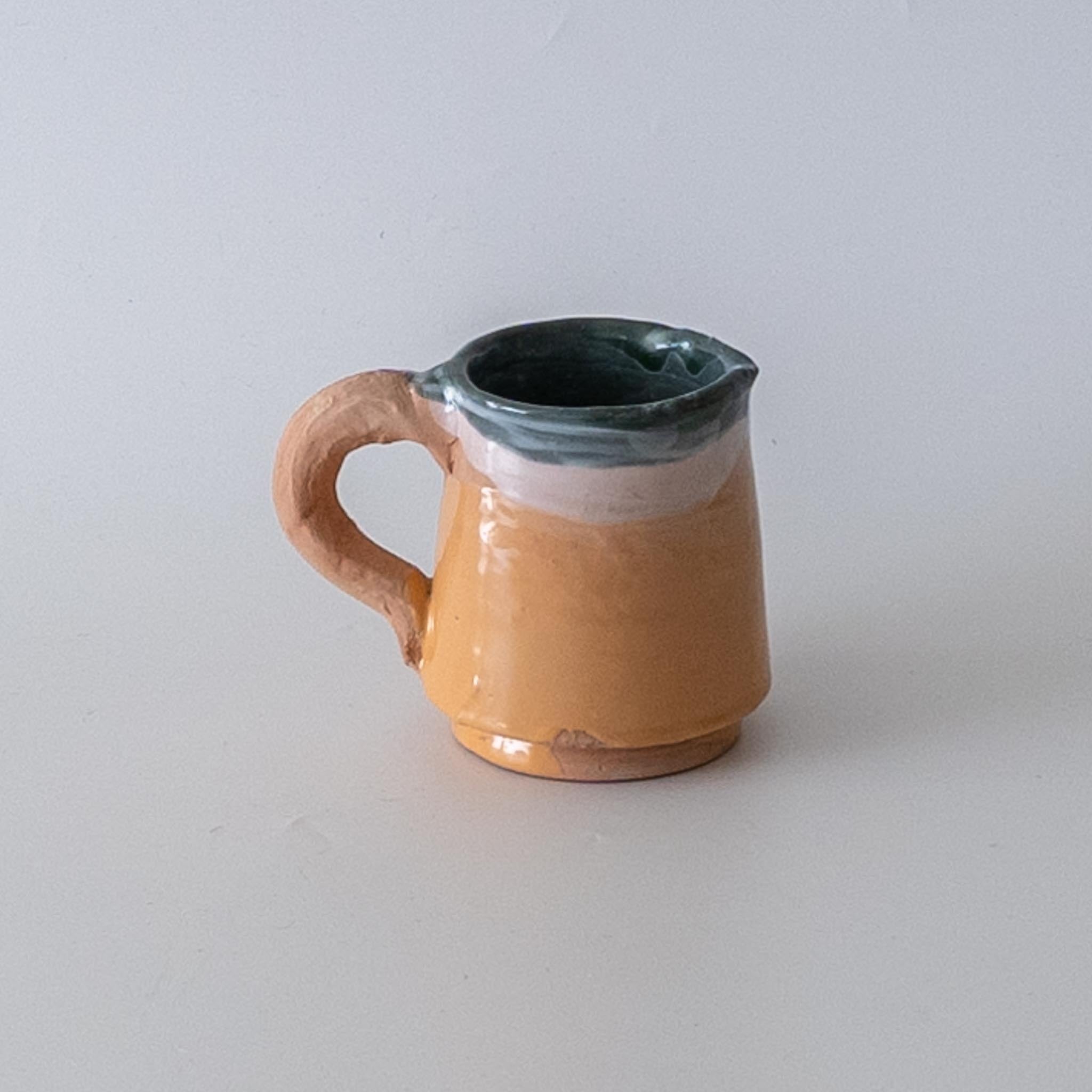 すっきりとしたスタイルのジャグにニュアンスのある釉薬を掛けたボディ。赤土を用いた素焼きのテクスチャーと、艶のある釉薬のコントラストが美しい仕上がりです。