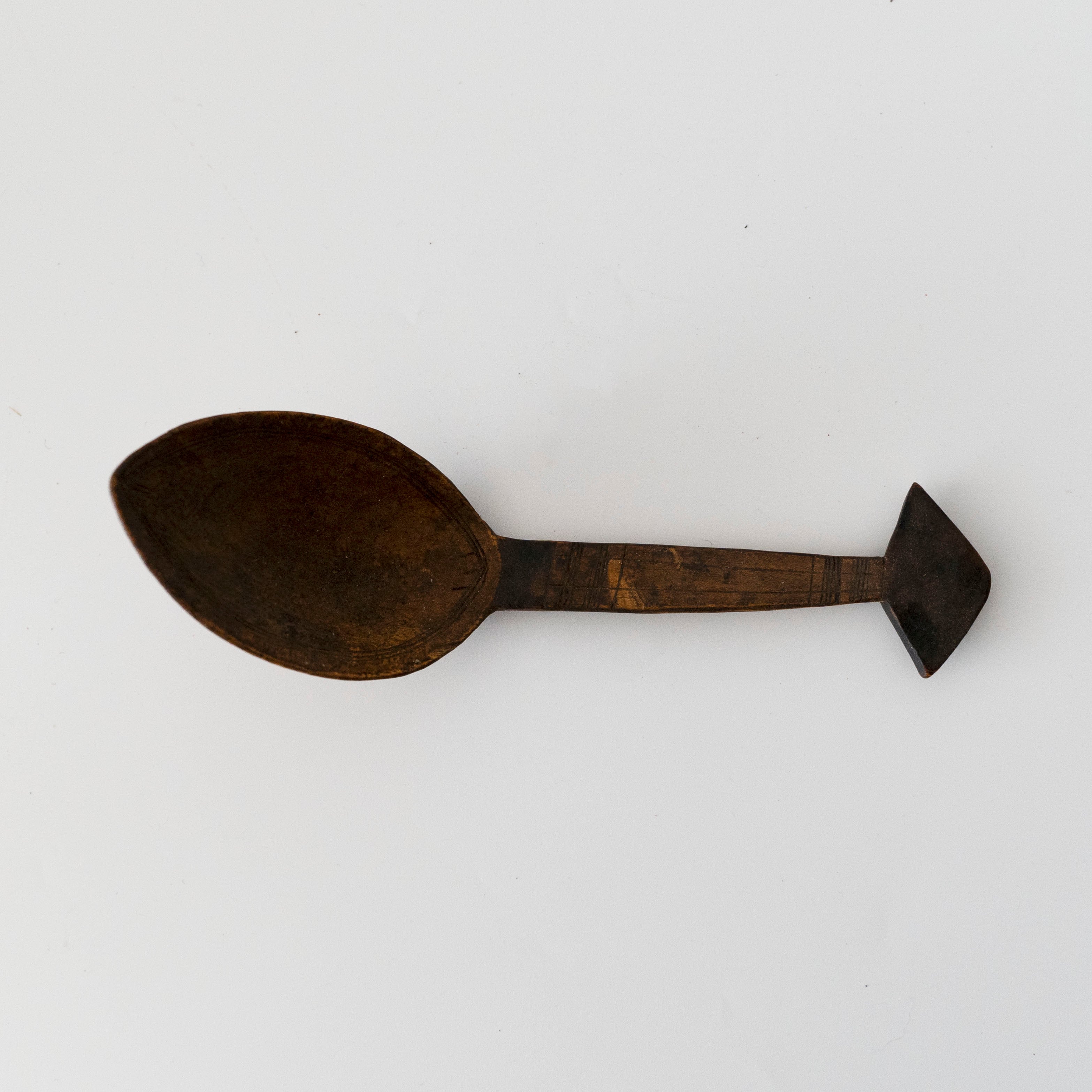西アフリカの主に砂漠に暮らした先住民族ベルベルの人々によって古くから人々の暮らしにの道具として使われてきたアイテム。こちらは、木の丸太をくり抜いて作られたスプーン。綺麗な状態で残っているものが少なく大変貴重なアイテムです。