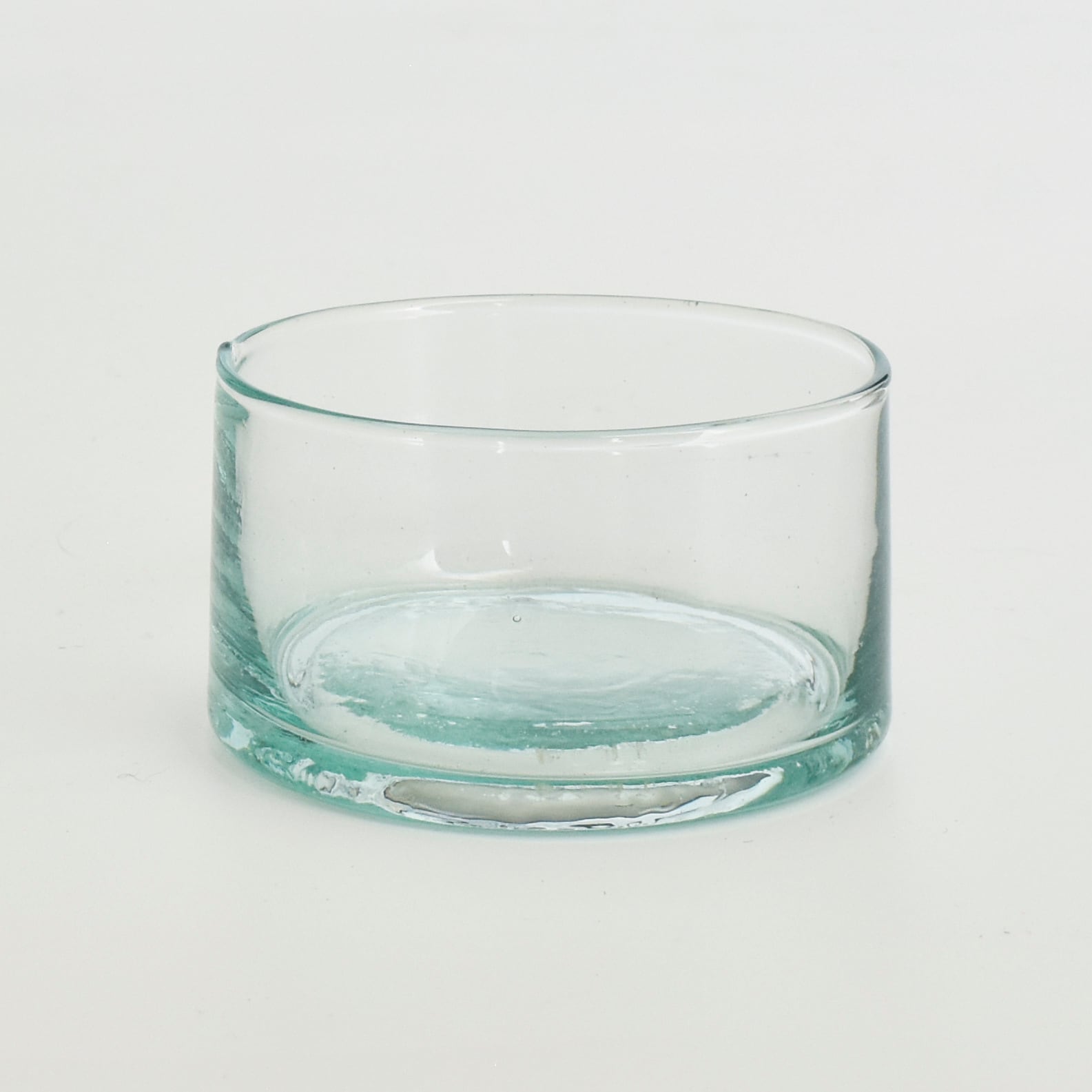 再生ガラスならではの爽やかなラムネ色に、とろりとした滑らかなな質感が特徴のガラスの器。サラダやフルーツなどの盛り付けにちょうど良いサイズ感です。