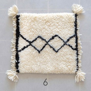 中アトラス北東部にある、ベニワレンという村で織られるラグです。染めなどを一切行わず、ウール本来のベージュやブラウンを生かしたナチュラルな色使いと、ふかふかとリッチな毛足の長さが特徴。モダンで魅力的なラグです。1960年代〜1970年代にかけて作られたものが多く、歴史のあるものについては、今では状態の良いものは希少となってしまいました。新しく作られているものには、美しい色に染めたスタイルも見られます。