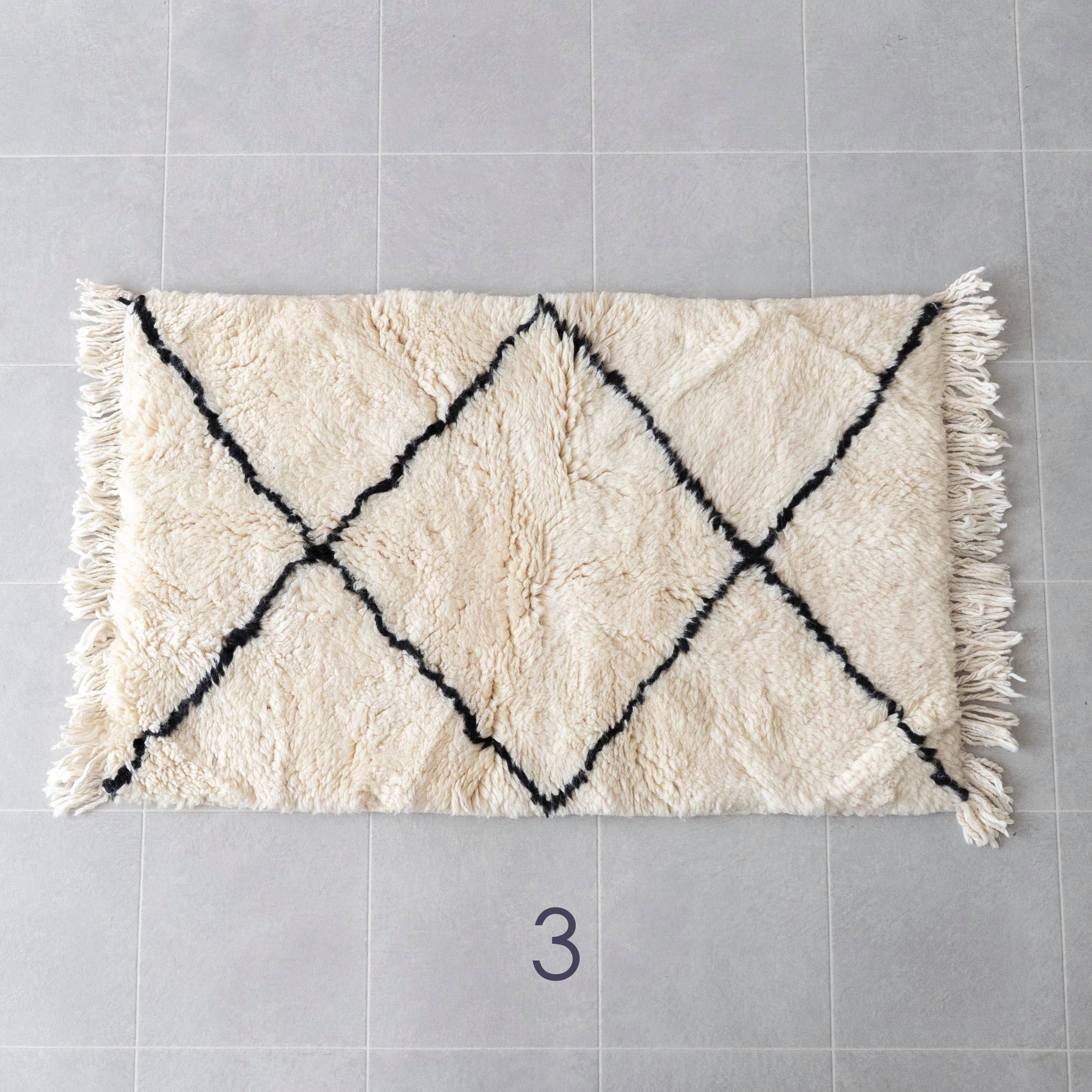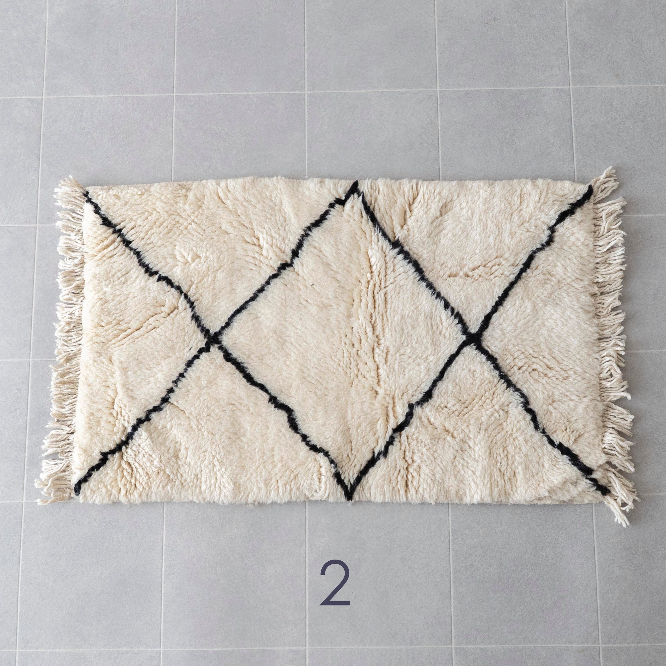 中アトラス北東部にある、ベニワレンという村で織られるラグです。染めなどを一切行わず、ウール本来のベージュやブラウンを生かしたナチュラルな色使いと、ふかふかとリッチな毛足の長さが特徴。モダンで魅力的なラグです。1960年代〜1970年代にかけて作られたものが多く、歴史のあるものについては、今では状態の良いものは希少となってしまいました。新しく作られているものには、美しい色に染めたスタイルも見られます。